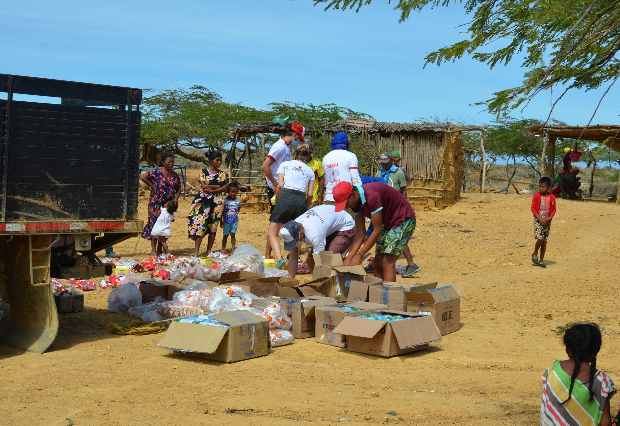 Tym razem obdarowywanych prawie 4 tonami produktów zaspokajających podstawowe potrzeby życiowe zostało ponad 30 wielodzietnych rodzin wiosek Wayuu na północny kraju w Alta Guajira (pustynny i najbardziej ubogi region Kolumbia).