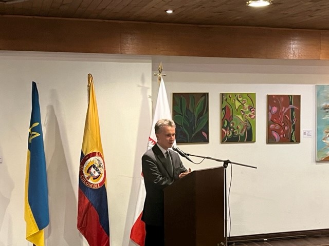 Ambasada RP wraz z Olgą de Villegas, znaną kolumbijską menedżer kultury, zainaugurowała 8 czerwca wystawę „Artyści malują dla Ukrainy”, na której ponad 20 kolumbijskich malarzy i rzeźbiarzy zaprezentowało swoje prace w celu zebrania funduszy na pomoc Ukrainie.