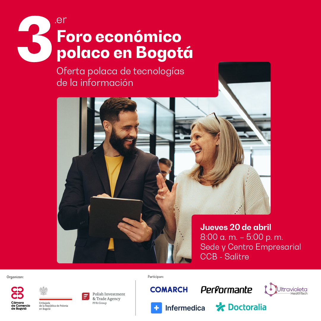 Wydarzenie odbędzie się w głównym audytorium Bogotańskiej Izby Handlowej przy Av. El Dorado No. 68D-35, w czwartek 20 kwietnia od 8:00 do 17:00.