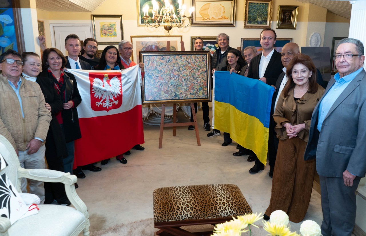 Dzięki inicjatywie kolumbijskiej dziennikarki i promotorki kultury, pani Olgi Villegas, w dniu 9 sierpnia odbyło się kolejne spotkanie - z udziałem przedstawiciela diaspory ukraińskiej w Kolumbii Rostysława Kałacynskiego i ambasadora RP Pawła Woźnego - podczas którego kolumbijscy artyści przekazali swoje obrazy jako darowiznę dla społeczności ukraińskiej. Celem tej akcji jest zebranie środków na pomoc humanitarną dla Ukrainy w obliczu rosyjskiej agresji. Do tej pory udało się zgromadzić na ten cel 18 dzieł malarzy kolumbijskich. Ambasada RP w Bogocie towarzyszy tej inicjatywie i wspiera ją.