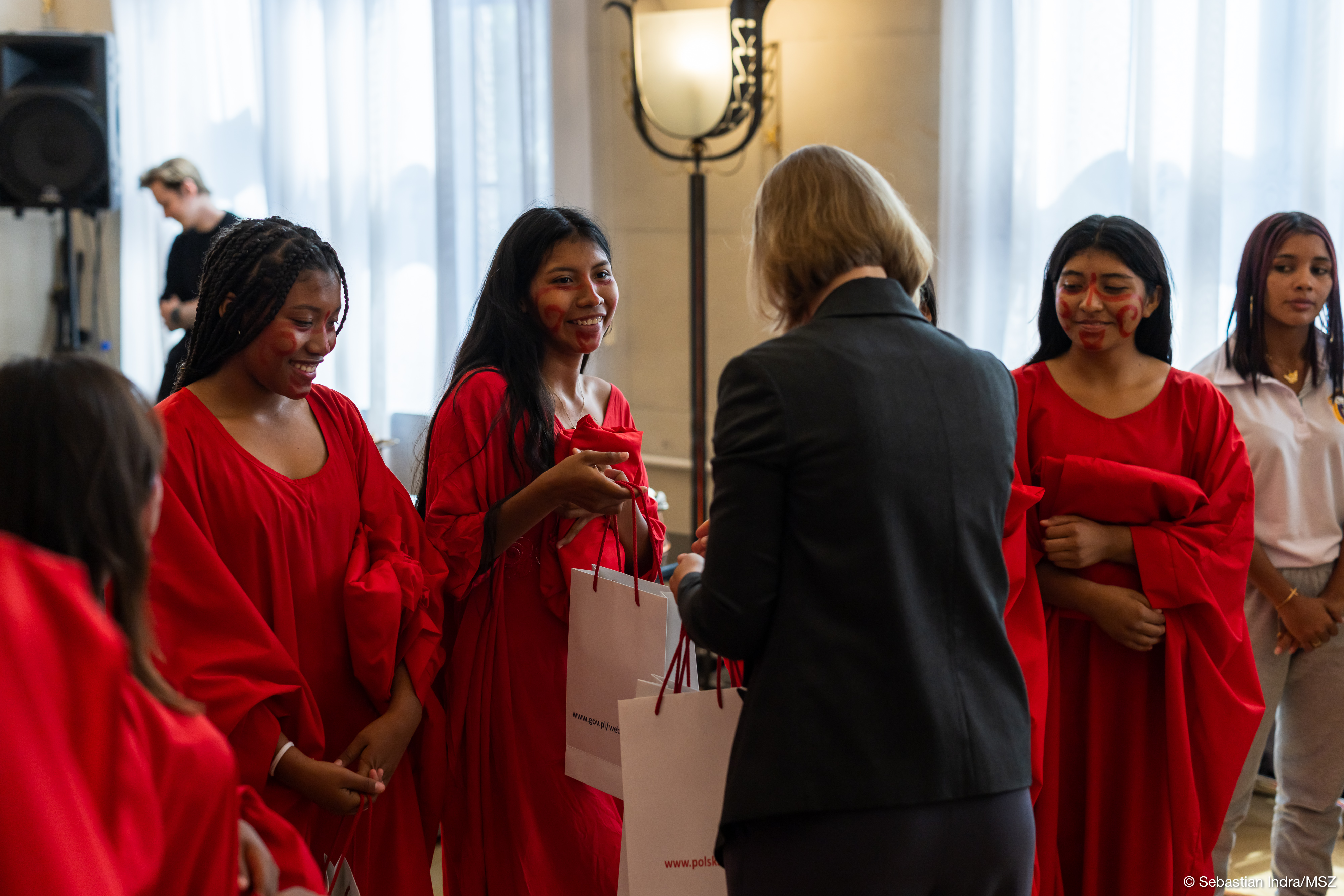 Wiceszefowa MSZ rozmawiała o pasjach rugbystek i ich planach na przyszłość. Młode Kolumbijki przybliżyły tradycyjną kulturę La Guajira i wykonały taniec typowy dla tego regionu.