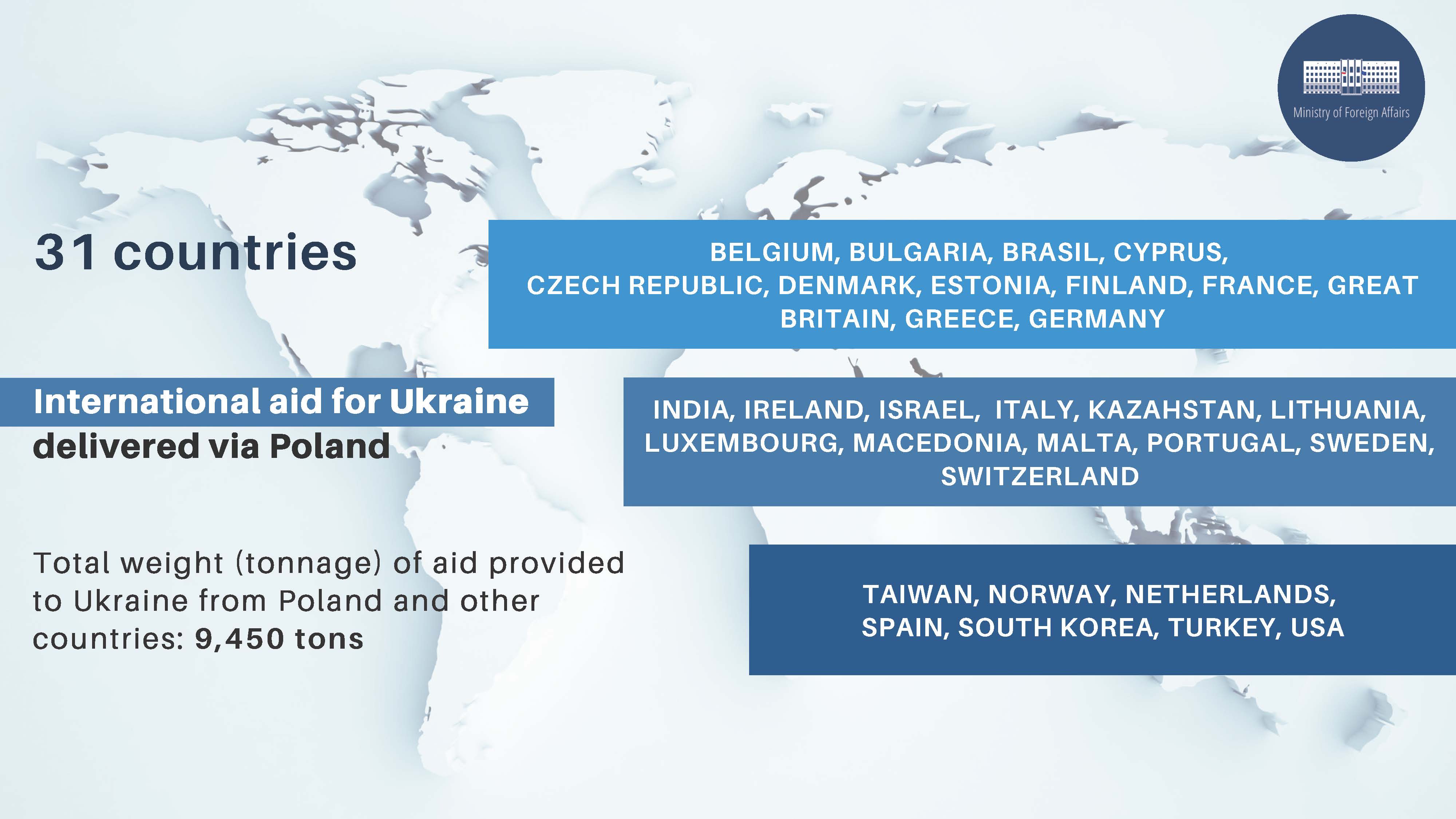 Międzynarodowa pomoc przekazana Ukrainie, a skoordynowana przez Polskę, wynosiła na dzień 14 marca 18,313 milionów Euro.