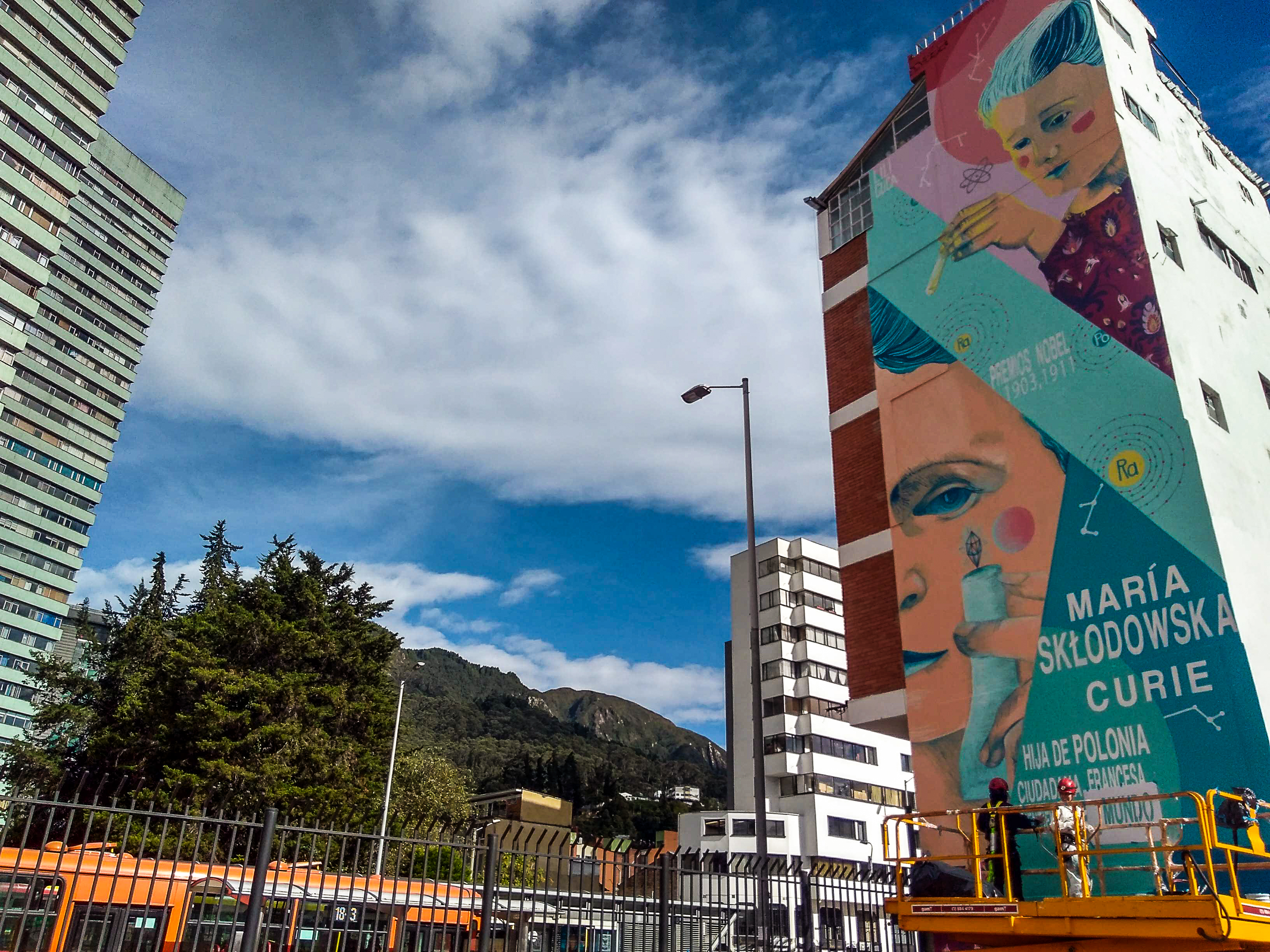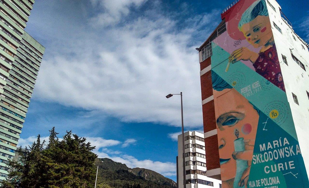 Z inicjatywy naszej Ambasady, znana kolumbijska artystka sztuki ulicznej Lili Cuca namalowała na północnej ścianie budynku naprzeciw stacji Transmilenio Universidades duży, podwójny portret ikony polskiej nauki Marii Skłodowskiej-Curie. Wychodzący na parking Uniwersytetu Jorge Tadeo Lozano przy Carrera 3a z Calle 22, wielkoformatowy mural przedstawia Skłodowską-Curie jako laureatkę podwójnej Nagrody Nobla w dziedzinie fizyki i chemii, z napisem: „María Skłodowska Curie, córka Polski, obywatelka Francji, naukowiec światowej sławy”. Polskie pochodzenie badaczki podkreśla wzór na sukience, zaczerpnięty z tradycyjnych wycinanek łowickich. Nie mogło też zabraknąć odniesienia do roweru, preferowanego przez nią środka transportu, będącego równocześnie ukłonem w stronę kultury miejskiej Bogoty.