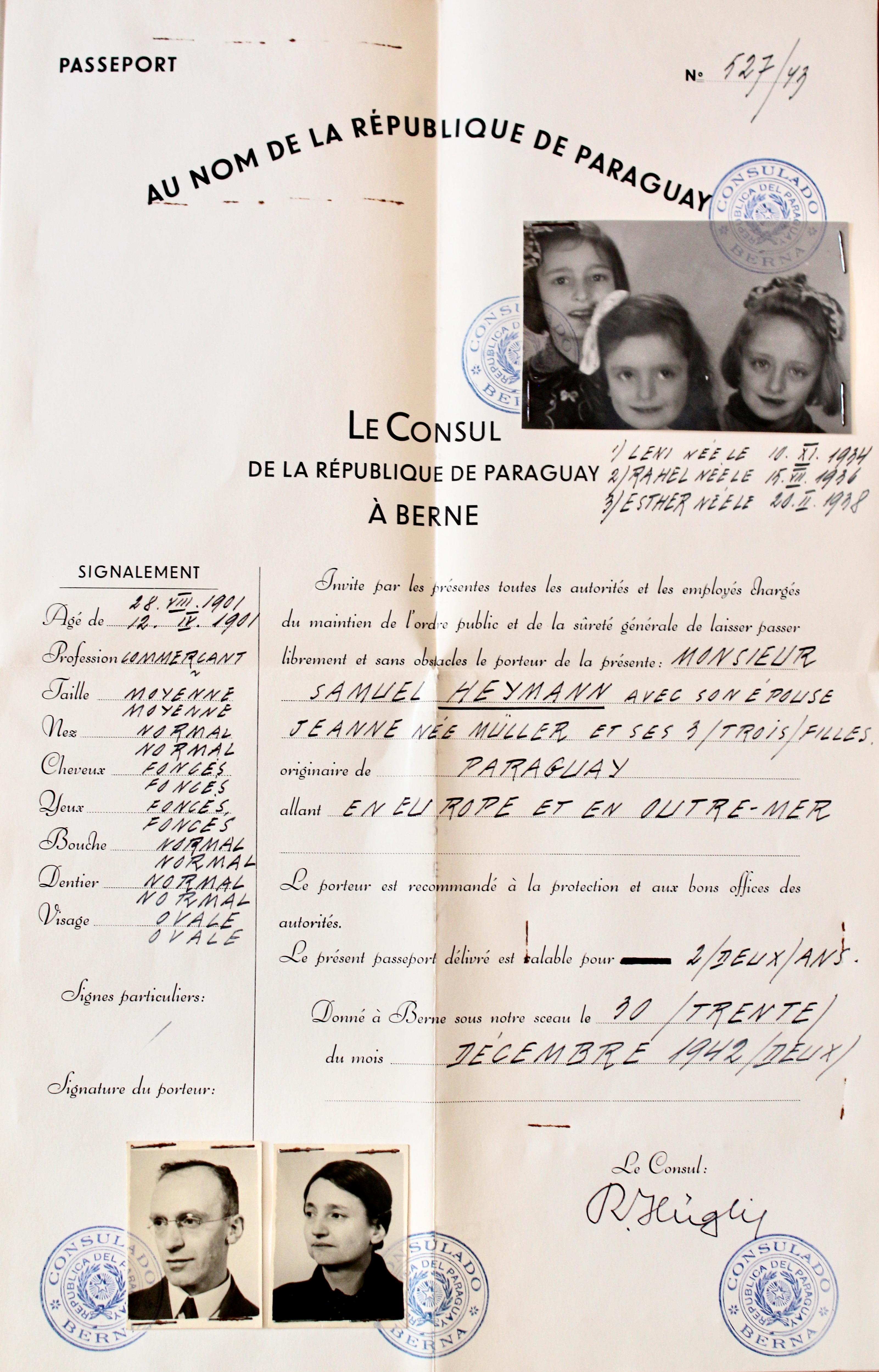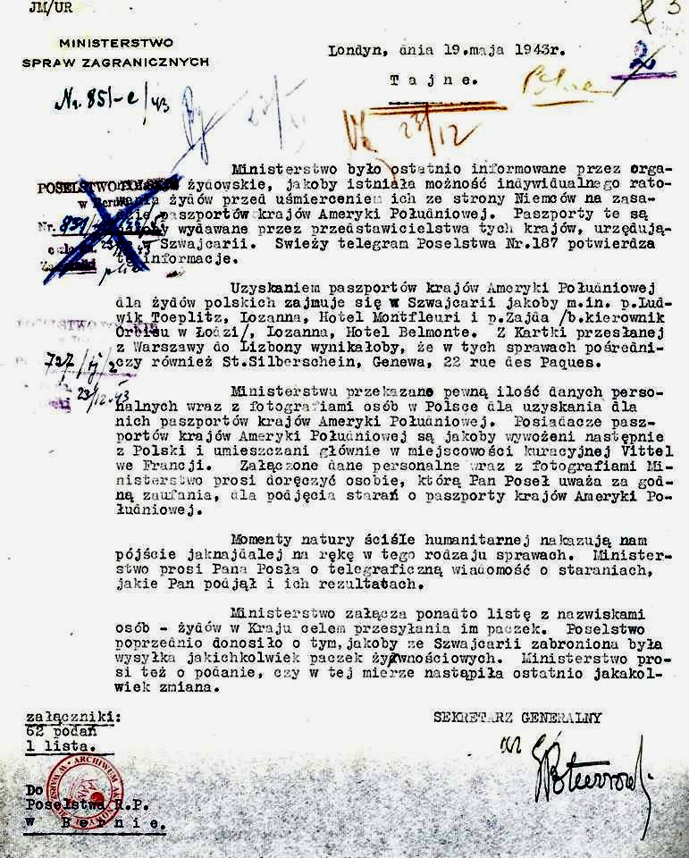 Jedna z pierwszych udanych operacji przekazania podrobionych paszportów miała miejsce jesienią 1941 roku. Dzięki „uzyskanemu” wówczas paragwajskiemu obywatelstwu, w początkach 1943 roku grupa internowanych Żydów została wywieziona z Polski do obozów w Tittmoning w Bawarii i Vittel we Francji. Część z nich doczekała się wymiany na jeńców niemieckich internowanych przez aliantów. Akcja produkowania paszportów nabrała specjalnego znaczenia po maju 1943 roku, gdy stłumione zostało powstanie w getcie warszawskim. Himmler, stojący na czele SS i niemieckiej policji, wydał wówczas decyzję o przyspieszeniu eksterminacji pozostałych przy życiu ok. 300 tysięcy Żydów i likwidacji wszystkich gett na terenie Polski. Niestety, wiele dokumentów wyprodukowanych w Bernie nie zdążyło nadejść na czas. Już po likwidacji getta w Warszawie do placówki pocztowej przy ul. Zamenhofa nadal trafiały listy ze Szwajcarii z dokumentami poświadczającymi obywatelstwo krajów południowoamerykańskich dla osób, które zginęły w czasie powstania lub zostały wywiezione do Treblinki. Szwajcarskie dokumenty stały się wówczas przedmiotem handlu ludzi będących konfidentami gestapo, łudzących Żydów nadzieją na przeżycie. Spośród 2000 osób, które licząc na uzyskanie zbawiennego zaświadczenia zgromadziły się w warszawskim Hotelu Polskim i sowicie opłaciły swój „ratunek”, niemal wszystkie zostały w pierwszej połowie lipca 1943 roku wysłane w transporcie do obozu w Bergen-Belsen lub przeniesione na Pawiak.