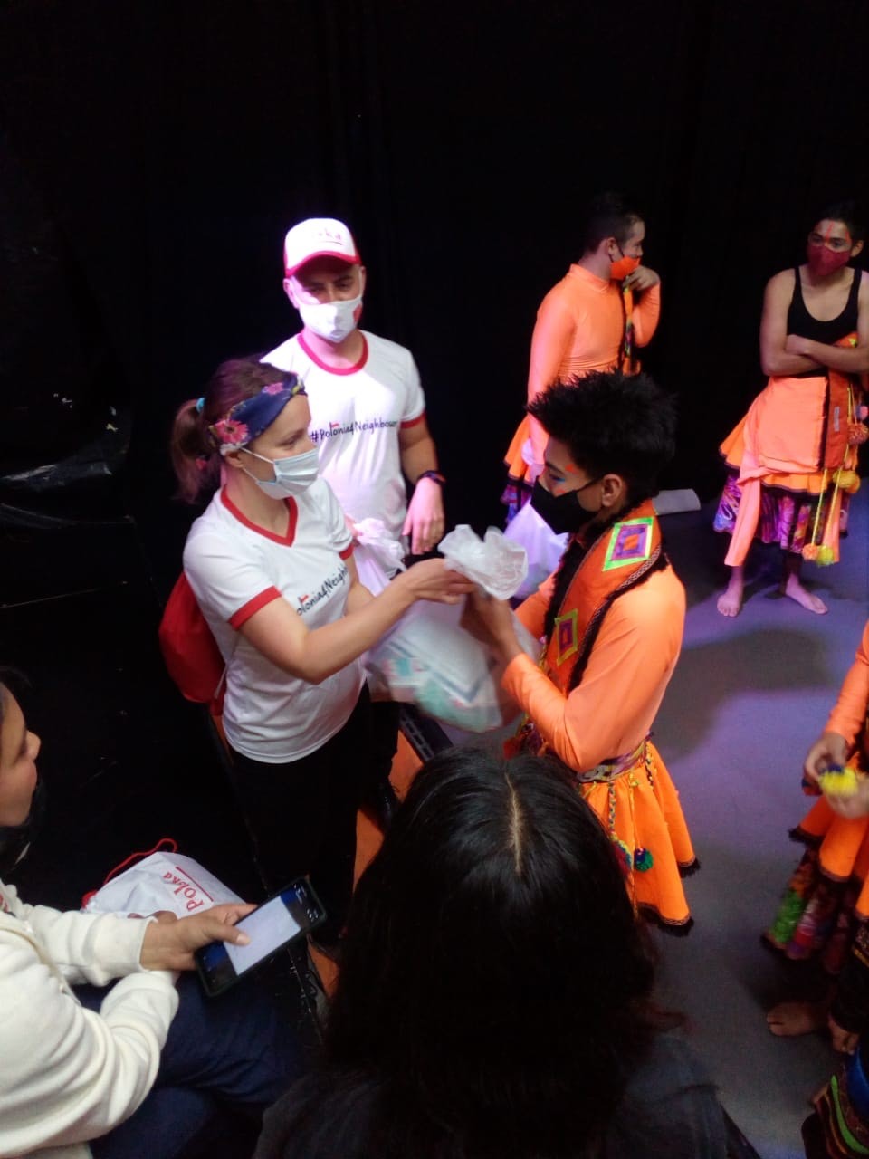 Tym razem Ambasada RP wraz z Panią Moniką Alayón - założycielką organizacji Help For Colombia rozdali 20 toreb z produktami pierwszej potrzeby i przyborami szkolnymi w ramach projektu MSZ RP o nazwie #Polonia4Neighbours. Ambasada podarowała również bibliotece Kolektywu Abya-Yala książki o Polsce jej historii i jej relacjach z Ameryką Łacińską i Karaibami.