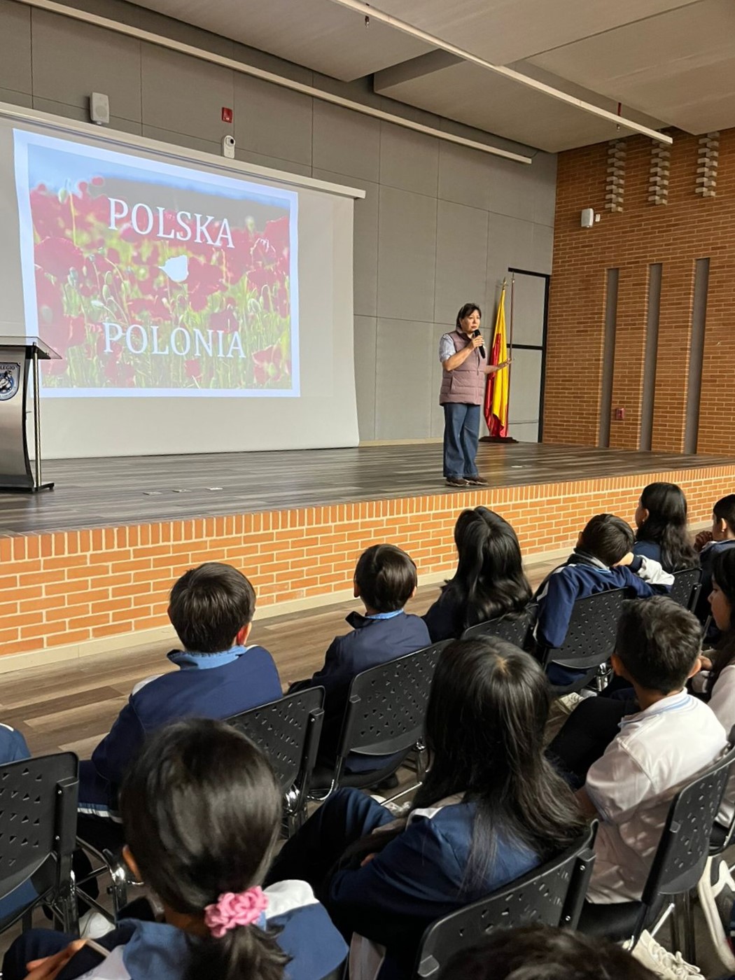 Przed pokazem filmu dzieci wysłuchały prezentacji wygłoszonej przez przedstawicieli Ambasady. Dzięki prezentacji, uczniowie poznali podstawowe informacje nt. naszego kraju, tj. usytuowanie geograficzne, symbole narodowe, tradycyjne potrawy, zwierzęta występujące w naszym kraju oraz wielu wybitnych Polaków, którzy zapisali się na łamach światowej historii. Dzieci nauczyły się również pierwszych polskich słów, które – ku naszemu miłemu zaskoczeniu – wymówiły bez problemu. Prezentacja zakończona była quizem wiedzy nt. Polski, w którym można było wygrać upominki o Polsce.