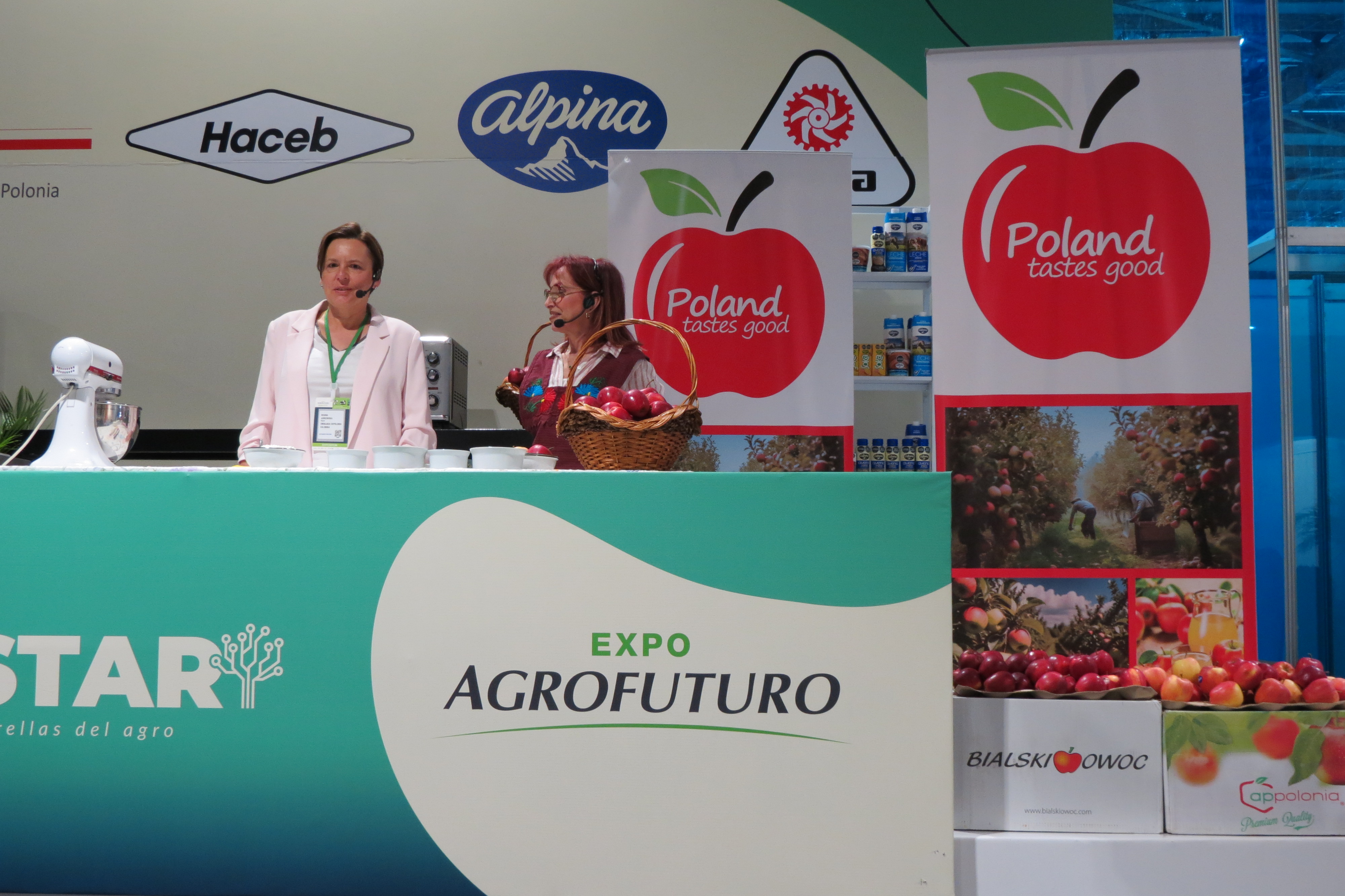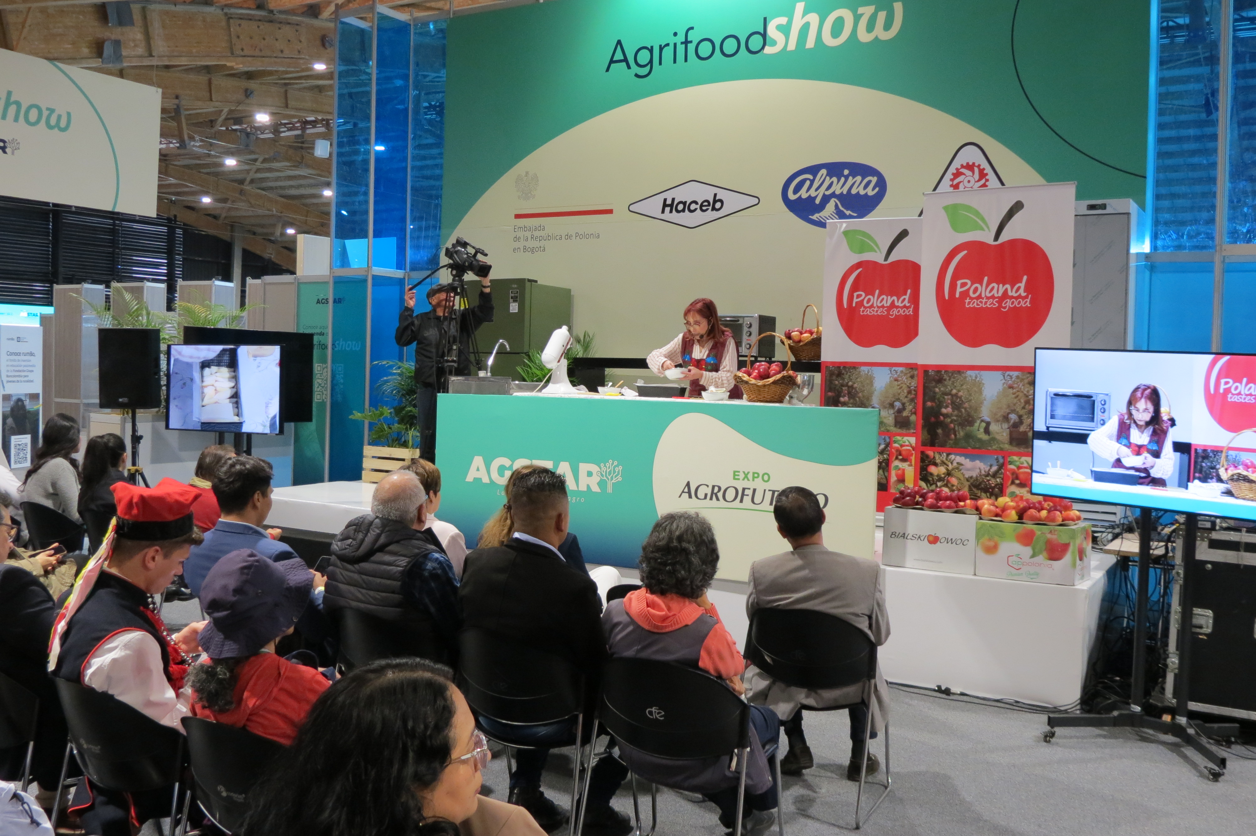 W ramach promocji przeprowadzono pokaz kulinarny z udziałem Yaneth Waldman, znanej kolumbijskiej celebrytki i uczestniczki programu Master Chef. Przygotowała ona deser na bazie polskich jabłek, podkreślając ich wyjątkowe cechy, takie jak soczystość i naturalna słodycz. Występ spotkał się z dużym zainteresowaniem uczestników, a Yaneth Waldman dodatkowo promowała polskie jabłka w swoich mediach społecznościowych, przyciągając uwagę szerokiej kolumbijskiej publiczności. Jej posty obejrzało prawie 60 tysięcy internautów. Uczestnicy wydarzenia zorganizowanego podczas Targów mieli także możliwość degustacji specjalnie przygotowanych na tę okazję tradycyjnych polskich wypieków takich jak szarlotka oraz sernik z karmelizowanymi jabłkami. Promocja była skierowana do przedstawicieli kolumbijskich firm spożywczych, supermarketów oraz importerów, którzy wyrazili zainteresowanie nawiązaniem współpracy z polskimi producentami. Ambasada zatrudniła też kilka osób, które ubrane w stroje krakowskie rozdawały jabłka na terenie całego pawilonu wystawienniczego. Jabłka do celów promocyjnych Ambasada otrzymała od polskich firm Bialski Owoc oraz Apolonia, a także od firmy kolumbijskiej Importaciones del Sur.