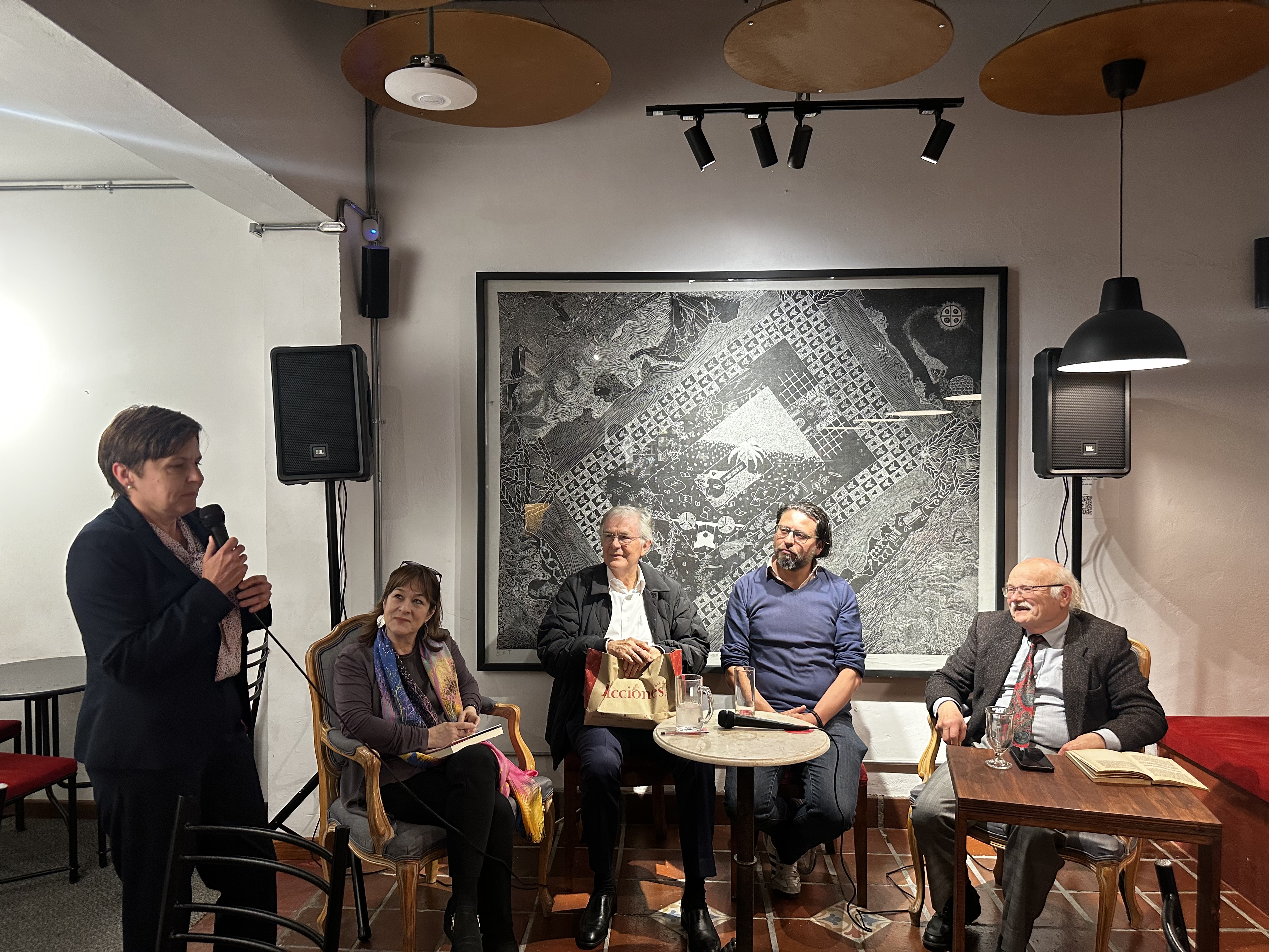 Wydarzenie odbyło się w klimatycznym Ficciones Bar de Libros w Bogocie, a moderatorką rozmowy była Consuelo Gaitán, dyrektorka tej przestrzeni literackiej. W panelu uczestniczyli znakomici goście: profesor Bogdan Piotrowski oraz poeci Carlos Vásquez Zawadzki i Hellman Pardo. Podczas spotkania uczestnicy dzielili się refleksjami na temat twórczości Czesława Miłosza, przybliżając zarówno jego najbardziej znane utwory, jak i te mniej popularne wśród międzynarodowej publiczności. W rozmowie nie zabrakło także anegdot związanych z życiem noblisty, które ukazywały go jako człowieka pełnego pasji i głębokich przemyśleń na temat świata. Nie zabrakło również recytacji poezji Miłosza, które pozwoliło zgromadzonym na nowo poczuć uniwersalność i aktualność przesłania poety.
