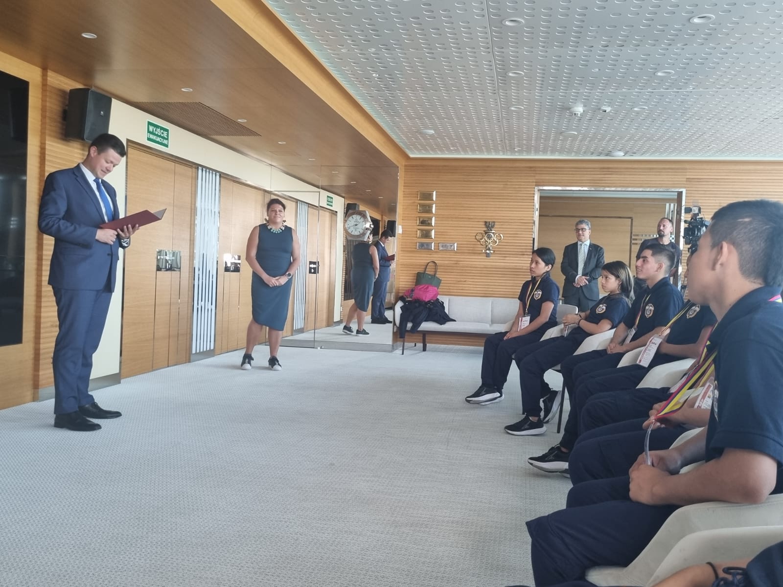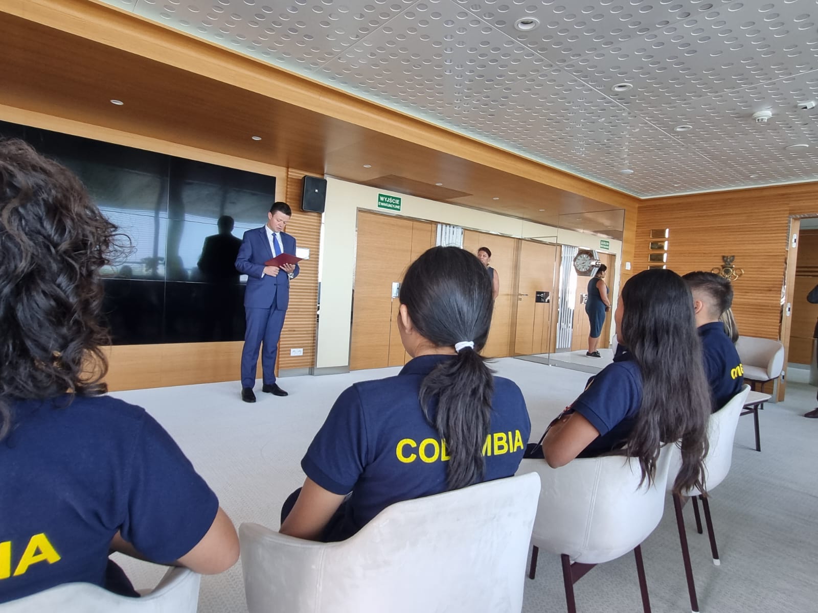 Grupa młodych kolumbijskich pływaków z Amazonii spotkała się z Szefem Służby Zagranicznej RP, Piotrem Rychlikiem, w siedzibie Centrum Olimpijskiego w Warszawie.
