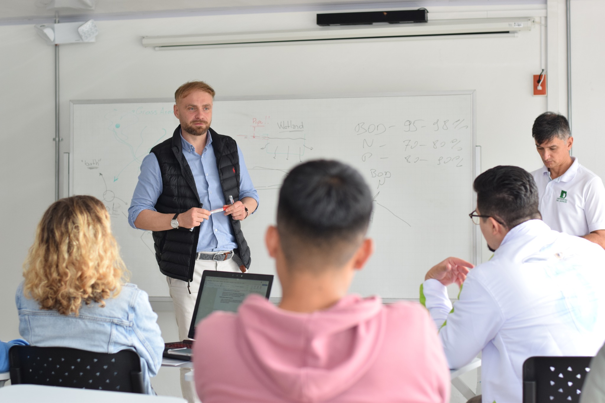 UniQuindío skorzystało z okazji, aby zainaugurować budowę pierwszego ekologicznego bioreaktora do oczyszczania wody (o nazwie Nature-Based Solutions), który powstaje we współpracy z Instytutem Nowych Technologii Inżynierii Środowiska (INTIŚ). Przedstawiciele WUM i INTIŚ zostali zaproszeni przez UniQuindío na tygodniową wizytę, w ramach której prowadzili zajęcia dla studentów, a także spotykali się z władzami uczelni, samorządem lokalnym i przedsiębiorcami. Uniwersytet Medyczny w Warszawie reprezentowała dr Olga Rostkowska, a INTIŚ – prof. Tomasz Warężak (uczestnik obu misji GreenEvo do Kolumbii). Ambasadorowi RP towarzyszyła Katarzyna Cholewińska, Kierownik Wydziału Polityczno-Ekonomicznego.