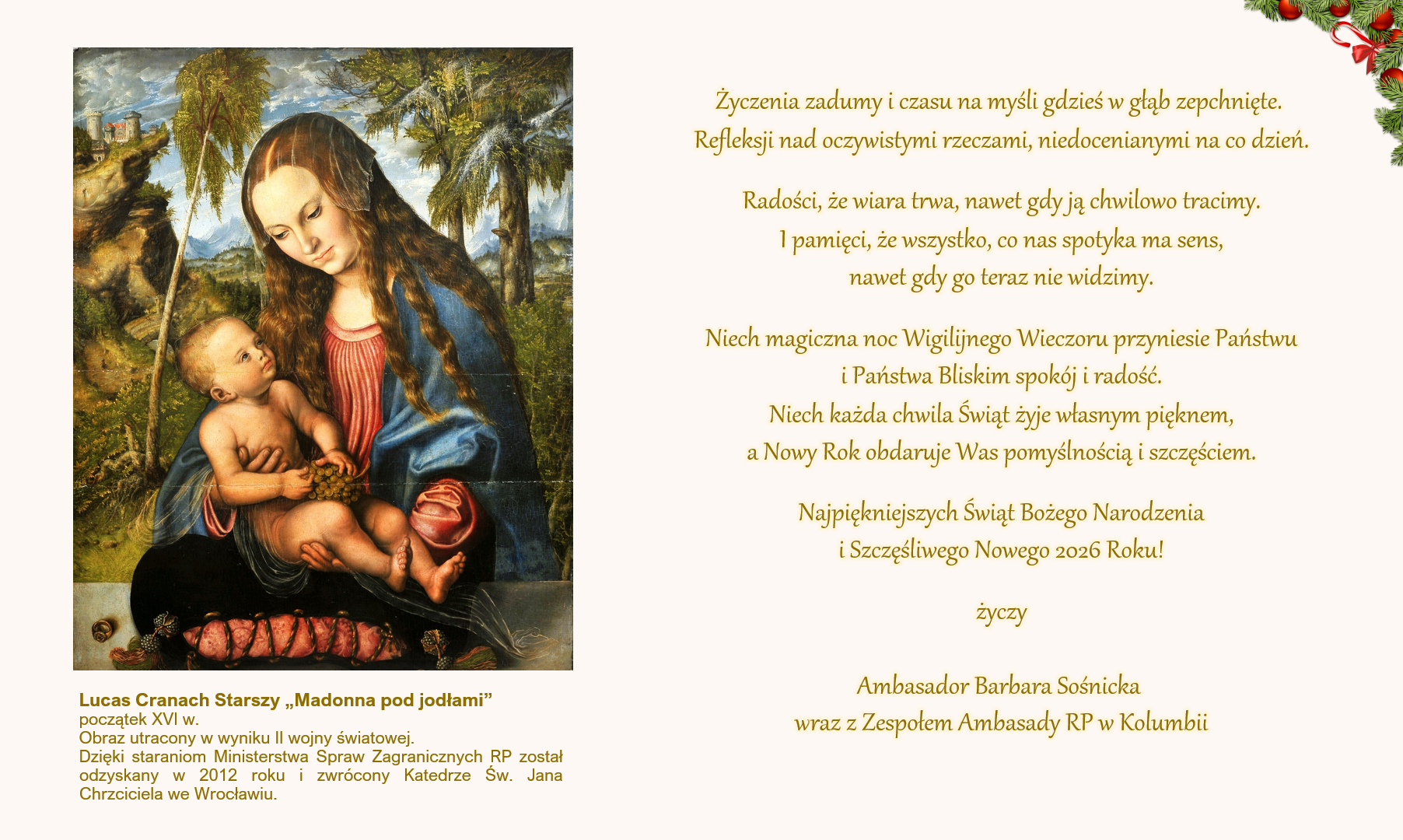 Najpiękniejszych Świąt Bożego Narodzenia i Szczęśliwego Nowego 2026 Roku