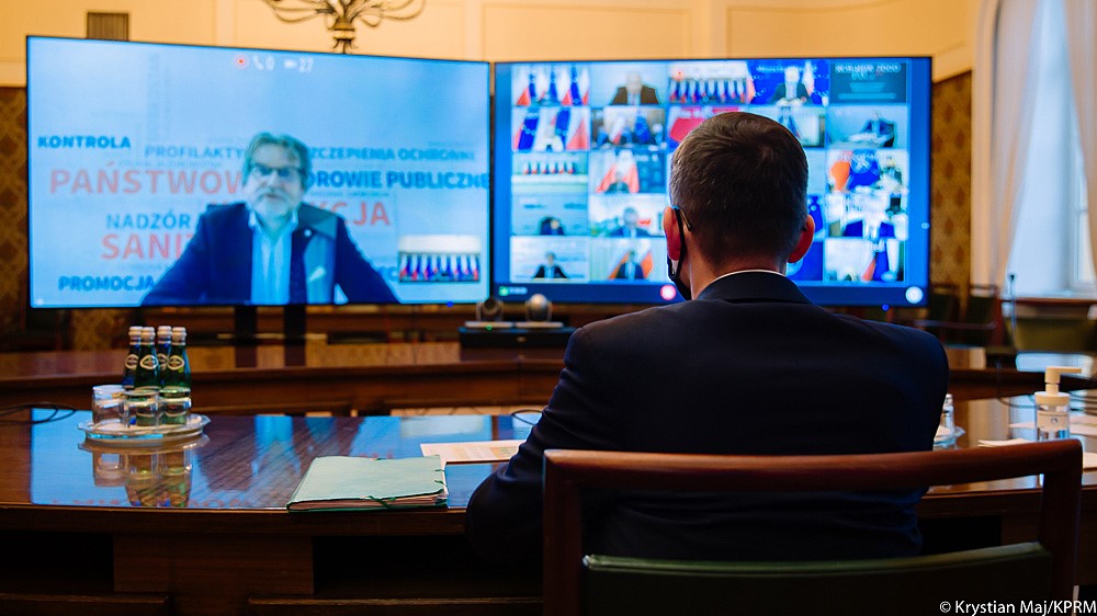 Na bieżąco obserwujemy i reagujemy na zmieniającą się sytuację epidemiczną w Polsce. W sytuacjach kryzysowych pierwsze decyzje zapadają podczas posiedzeń Rządowego Zespołu Zarządzania Kryzysowego. Pracami zespołu kieruje premier Mateusz Morawiecki. W jego skład wchodzą również ministrowie – w tym przypadku m.in. minister zdrowia, minister spraw wewnętrznych i administracji oraz minister obrony narodowej.