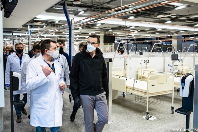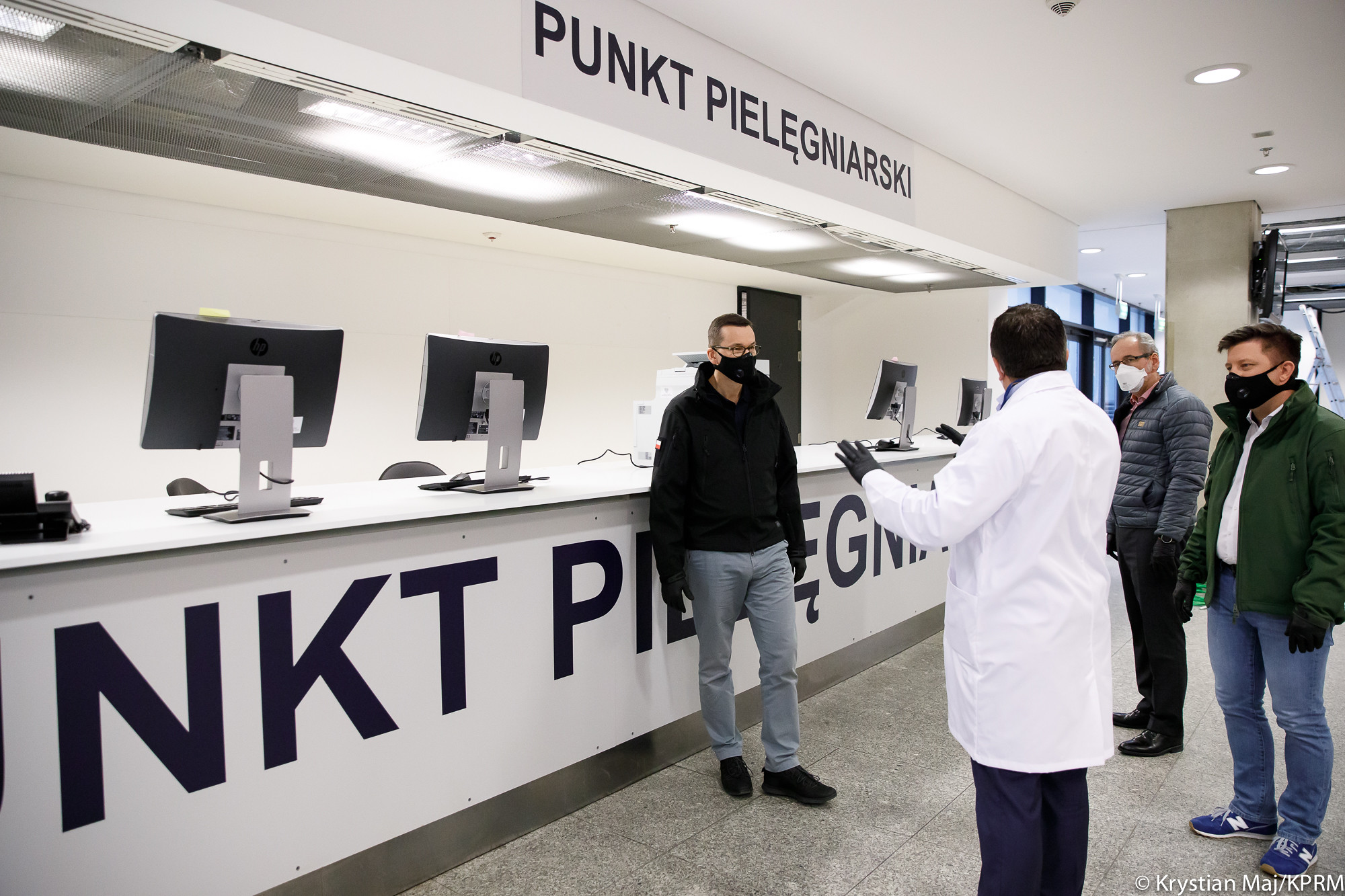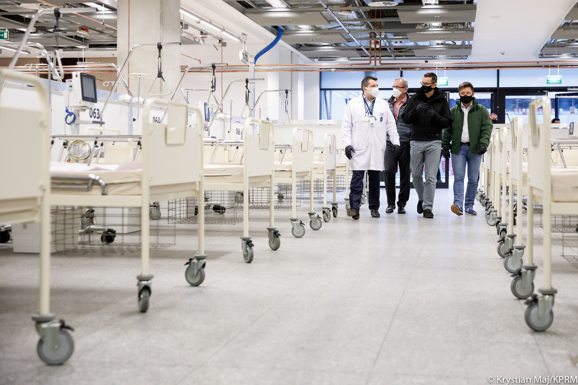 Pierwszy szpital rezerwowy powstał na stadionie PGE Narodowym w Warszawie. Placówka jest wyposażona w 160 kardiomonitorów, 45 respiratorów, 4 mobilne RTG, 3 wytwornice tlenu, 2 USG. Dodatkowo w 45 km przewodów elektrycznych i 5 km rur miedzianych do tlenu. Szpital przyjmuje już pierwszych pacjentów z COVID-19. Docelowo na PGE Narodowym dostępnych będzie 1200 łóżek szpitalnych.