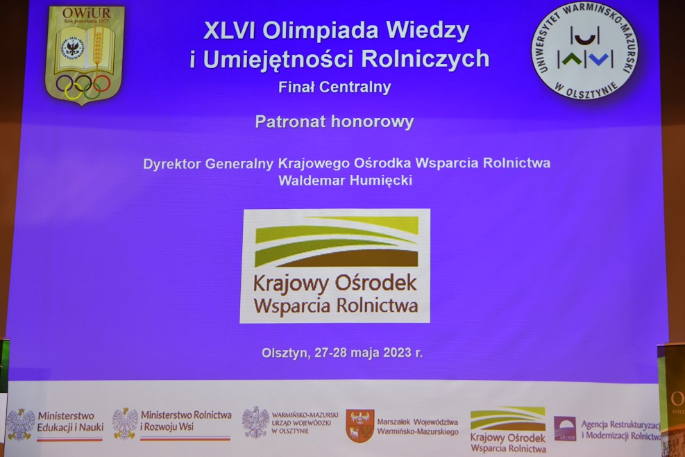 Olimpiada Wiedzy i Umiejętności Rolniczych to jeden z najstarszych i najbardziej prestiżowych konkursów wiedzy oraz umiejętności praktycznych organizowany w naszym kraju, któremu patronuje Minister Edukacji i Nauki oraz Minister Rolnictwa i Rozwoju Wsi. Tegoroczny finał odbywał się również pod Patronatem Honorowym Dyrektora Generalnego KOWR Waldemara Humięckiego.