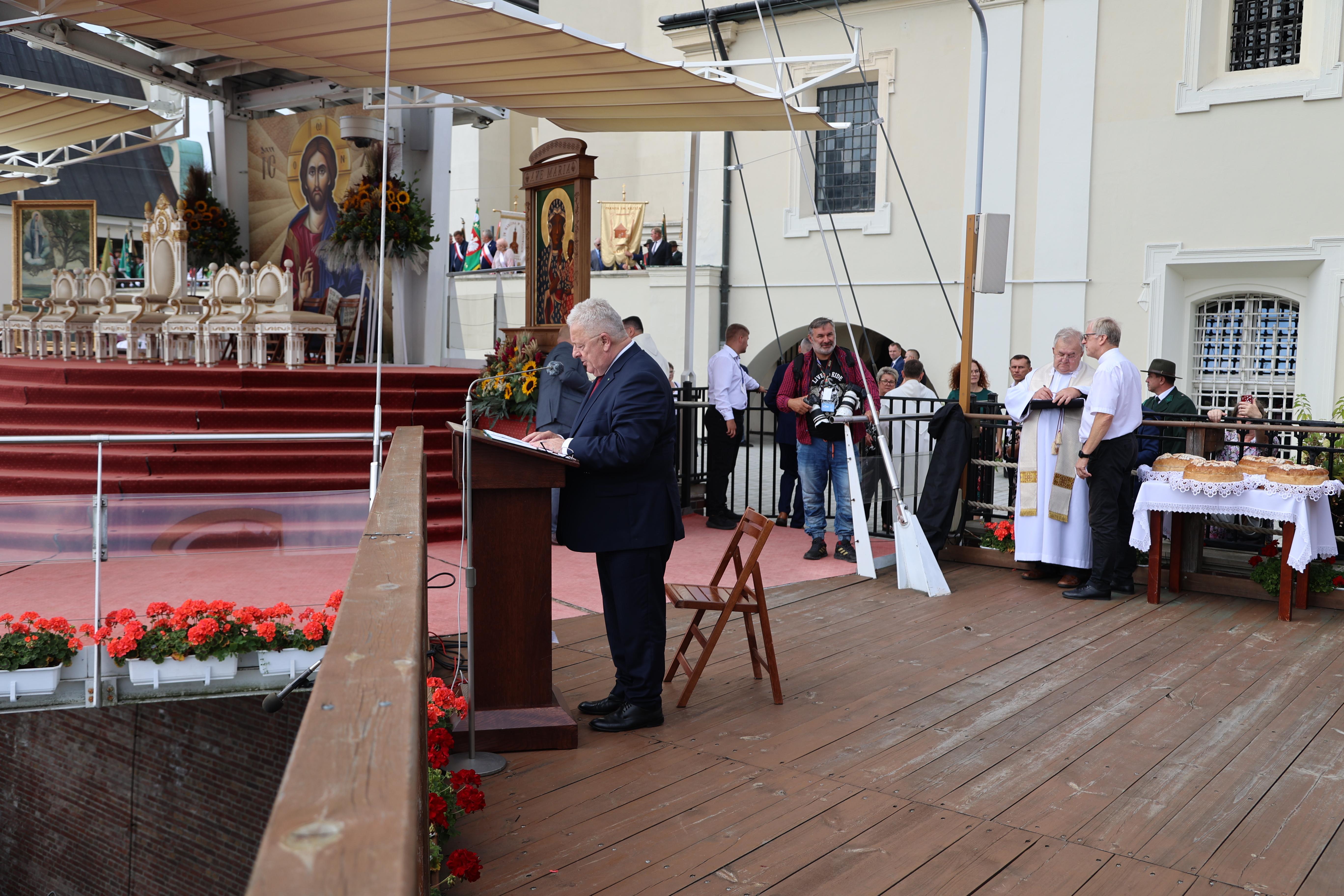 Przed rozpoczęciem Mszy św. rolników przybyłych na Jasną Górę powitał Czesław Siekierski, Minister Rolnictwa i Rozwoju Wsi. W swoim wystąpieniu powiedział m.in.: –Przyjeżdżamy na Jasnogórskie Wzgórze, by przed obrazem Królowej Polski, Matki Jezusa i naszej Matki dziękować Bogu, naszemu Stwórcy za chleb i plony, które otrzymujemy z naszych upraw. To podziękowanie za chleb jest jednocześnie dziękczynieniem za zdrowie i życie. Za bezpieczeństwo. Za tych których kochamy i za wspólnotę, którą tworzymy.