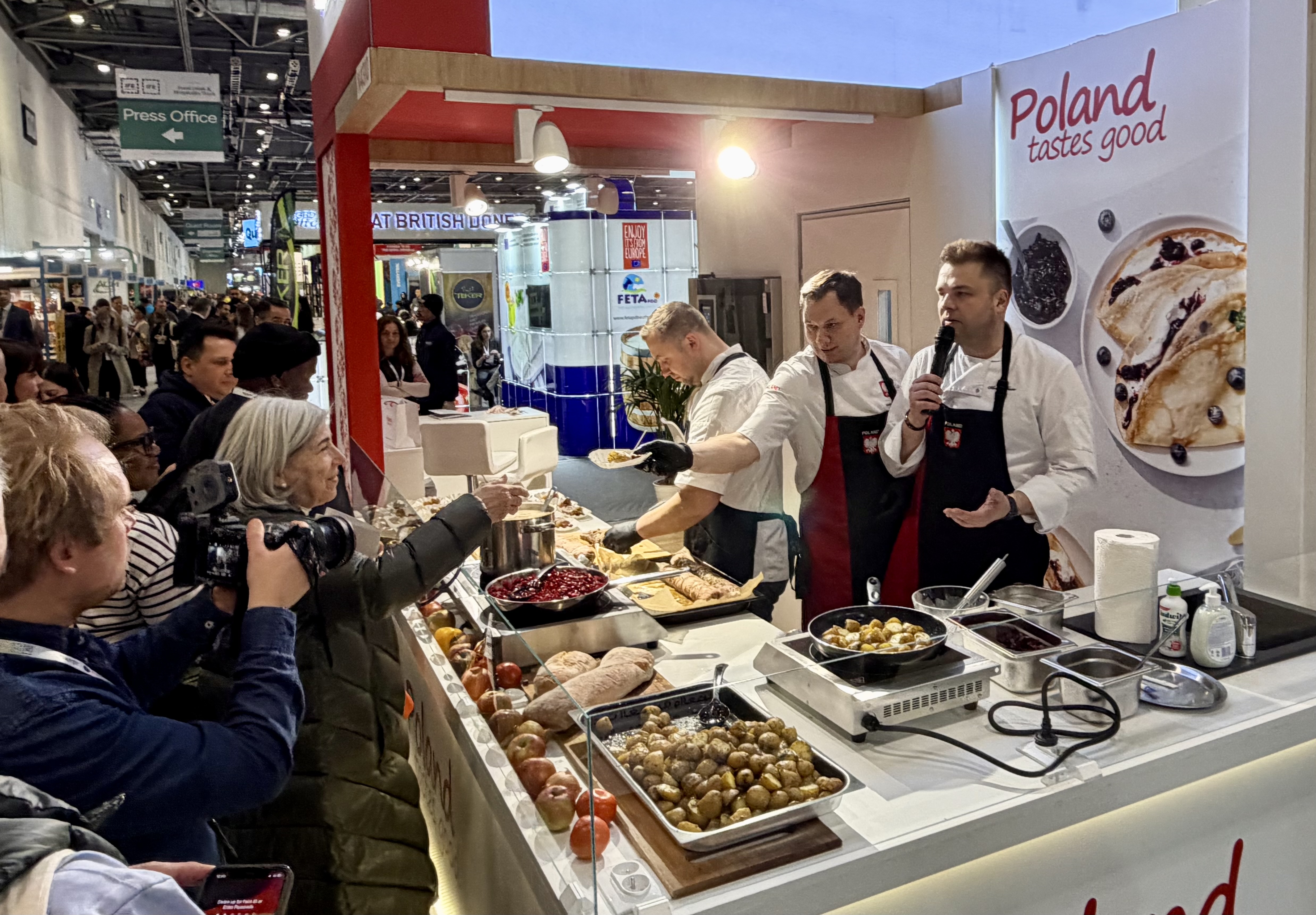 Corocznie polscy producenci i eksporterzy żywności i napojów zainteresowani współpracą na rynku brytyjskim prezentują w centrum wystawienniczym ExCeL London bogatą ofertę produktów spożywczych. W tym roku wystawia się 29 firm, prezentując m.in.: pieczarki, mięso drobiowe, wieprzowe, wołowe oraz przetwory z nich, produkty mleczne, makarony, mąki i kasze, słodycze (czekolady, pralinki, ciastka, lody) i przekąski, zioła i przyprawy, żywność ekologiczna, dania gotowe, napoje energetyczne, liofilizaty i suplementy diety. Zwiedzający targi mogą degustować na stoisku narodowym dania i przekąski typowe dla naszej kuchni, w tym: żurek, pierogi, pieczoną kaczkę, zrazy, gołąbki, babkę ziemniaczaną, pączki i sernik.