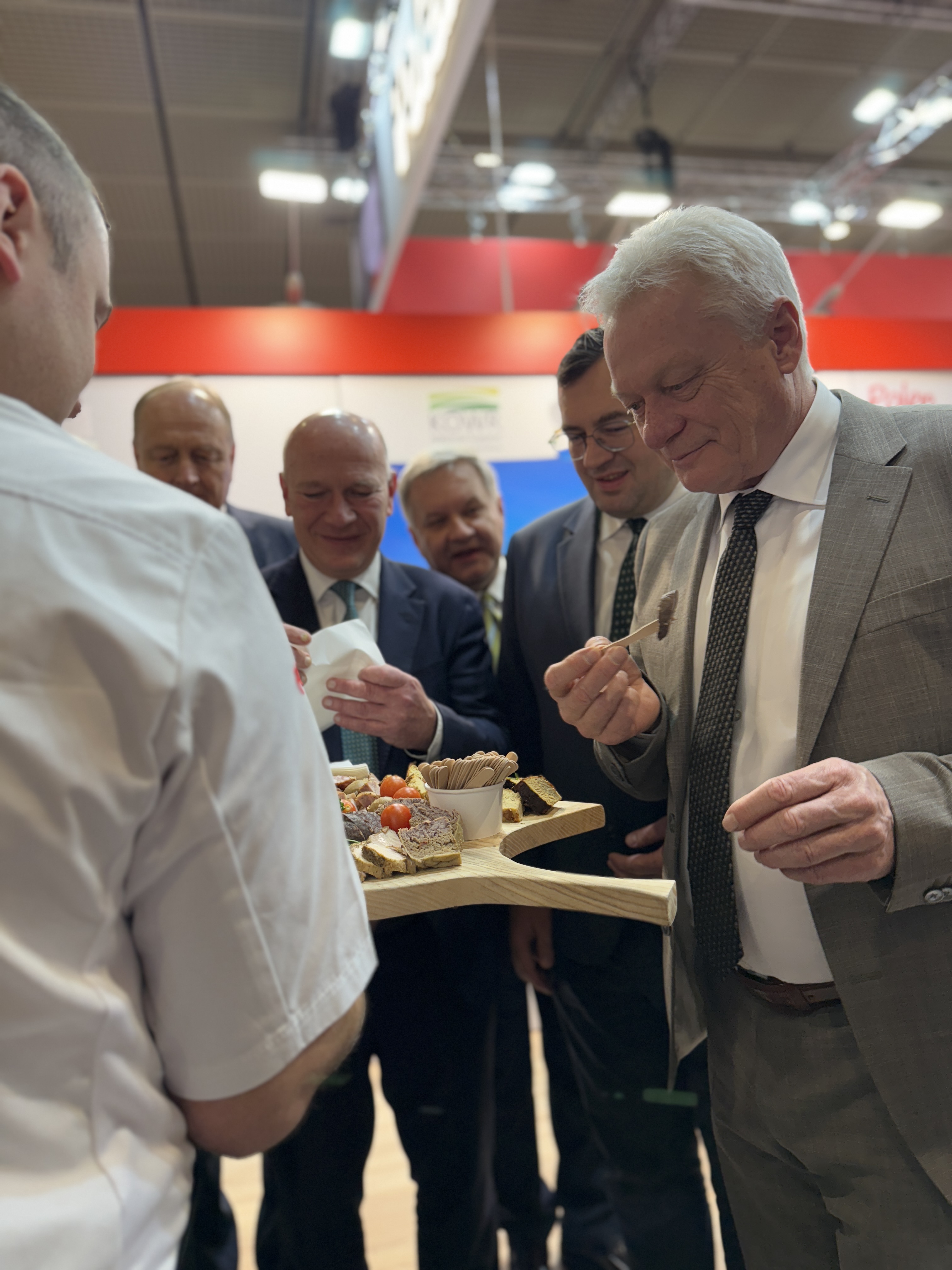 Polskie stoisko uroczyście otworzyli 16 stycznia br. przedstawiciele Ministerstwa Rolnictwa i Rozwoju Wsi (MRiRW): Minister Stefan Krajewski i Sekretarz Stanu Jacek Czerniak, Jan Tombiński - chargé d’affaires w Ambasadzie RP w Berlinie, zastępcy Dyrektora Generalnego KOWR: Lucjan Zwolak i Leszek Iwaniuk oraz Główny Lekarz Weterynarii Paweł Meyer. Minister Krajewski przyjął na stoisku narodowym Aloisa Rainera - Ministra rolnictwa, Wyżywienia i Tożsamości Regionalnej Niemiec, komisarza UE ds. rolnictwa Christophe’a Hansena oraz burmistrza Berlina Kaia Wegnera. Przedstawiciele MRiRW i KOWR przeprowadzają na polskim stoisku oraz na terenie targów liczne rozmowy dwustronne z ministrami rolnictwa państw UE i krajów trzecich, biorących udział w towarzyszącym targom Światowym Szczycie Ministrów Rolnictwa.