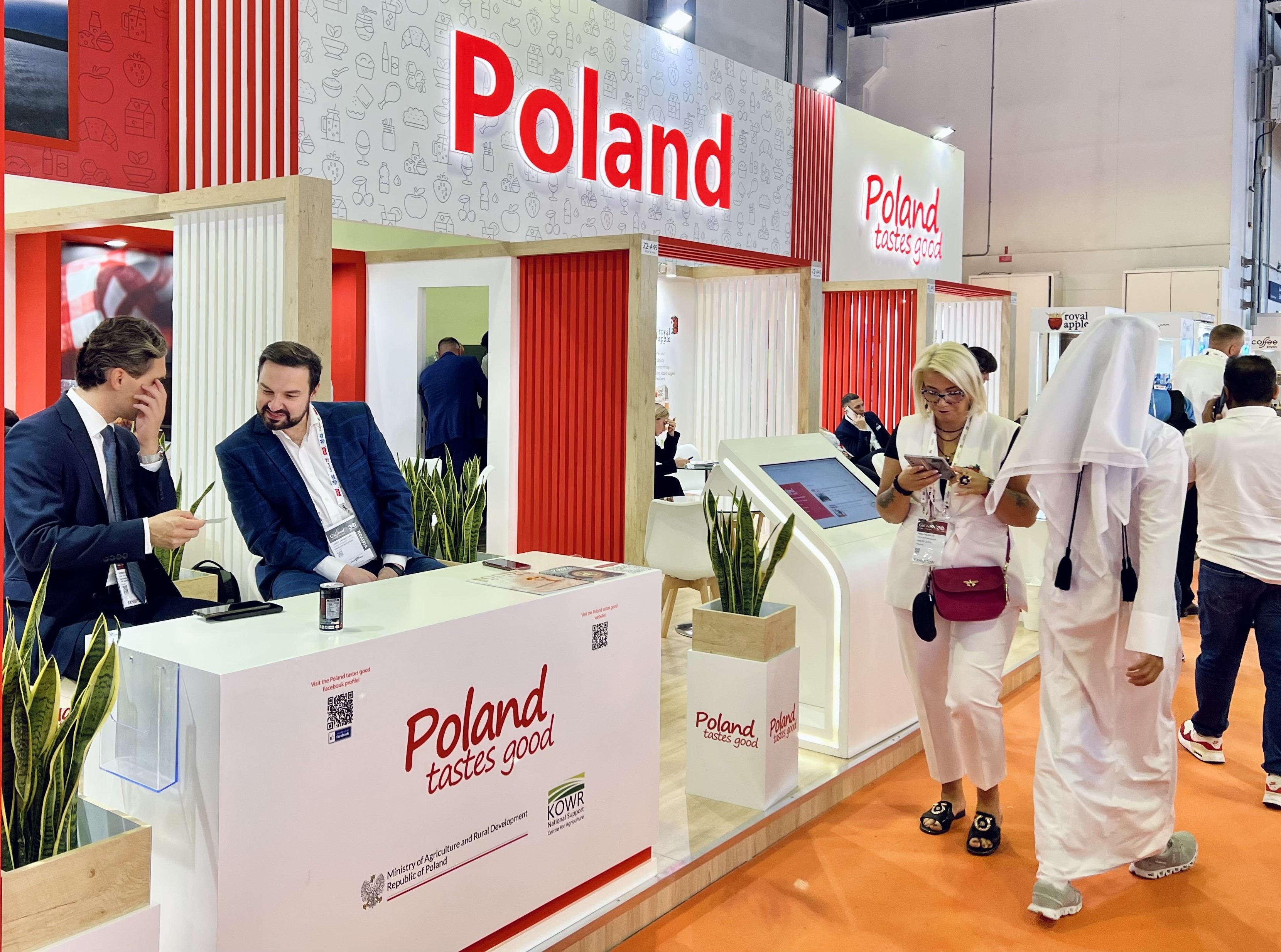 32 firmy wystawiające się wspólnie z KOWR pod szyldem „Poland tastes good” promują w Dubaju przez 4 dni m.in.: produkty nabiałowe, proszki mleczne, mrożone owoce i warzywa, przetwory warzywne, miody i produkty pszczele, mięso wołowe i drobiowe oraz przetwory z nich, makarony i inne przetwory zbożowe, produkty bezglutenowe, hummus, dania gotowe, przyprawy, proszki jajeczne, soki i napoje (kawa, herbata, napoje energetyczne, cydr 0%), ciastka i przekąski.