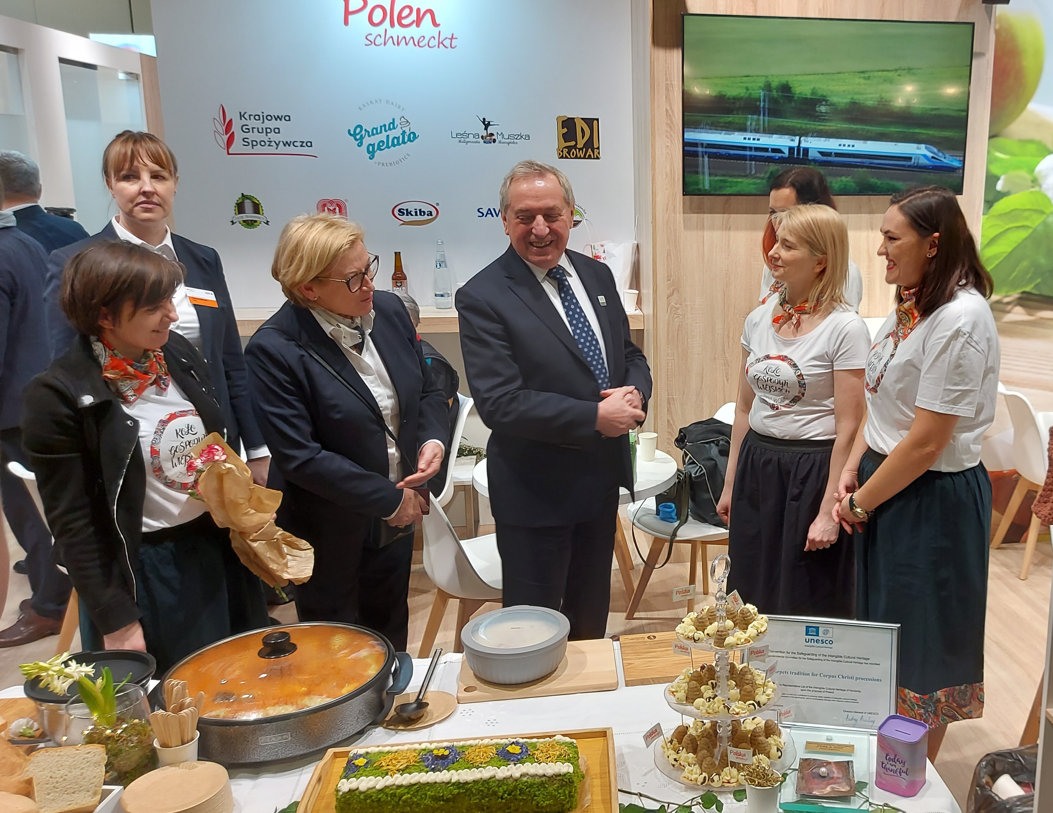 Polskie stoisko narodowe uroczyście otworzyli: Pan Henryk Kowalczyk – Wiceprezes Rady Ministrów, Minister Rolnictwa i Rozwoju Wsi oraz Pani Małgorzata Gośniowska-Kola – Zastępca Dyrektora Generalnego KOWR. Wicepremier Kowalczyk przyjął na polskim stoisku narodowym m.in. Pana Cema Ӧzdemira - Ministra Wyżywienia i Rolnictwa Niemiec oraz Pana Janusza Wojciechowskiego - Komisarza UE ds. rolnictwa, a także obecnych na targach ministrów rolnictwa państw UE i krajów trzecich, którzy brali udział w towarzyszącym targom Światowym Szczycie Ministrów Rolnictwa pod hasłem „Transformacja systemów żywnościowych - światowa odpowiedź na liczne kryzysy”.
