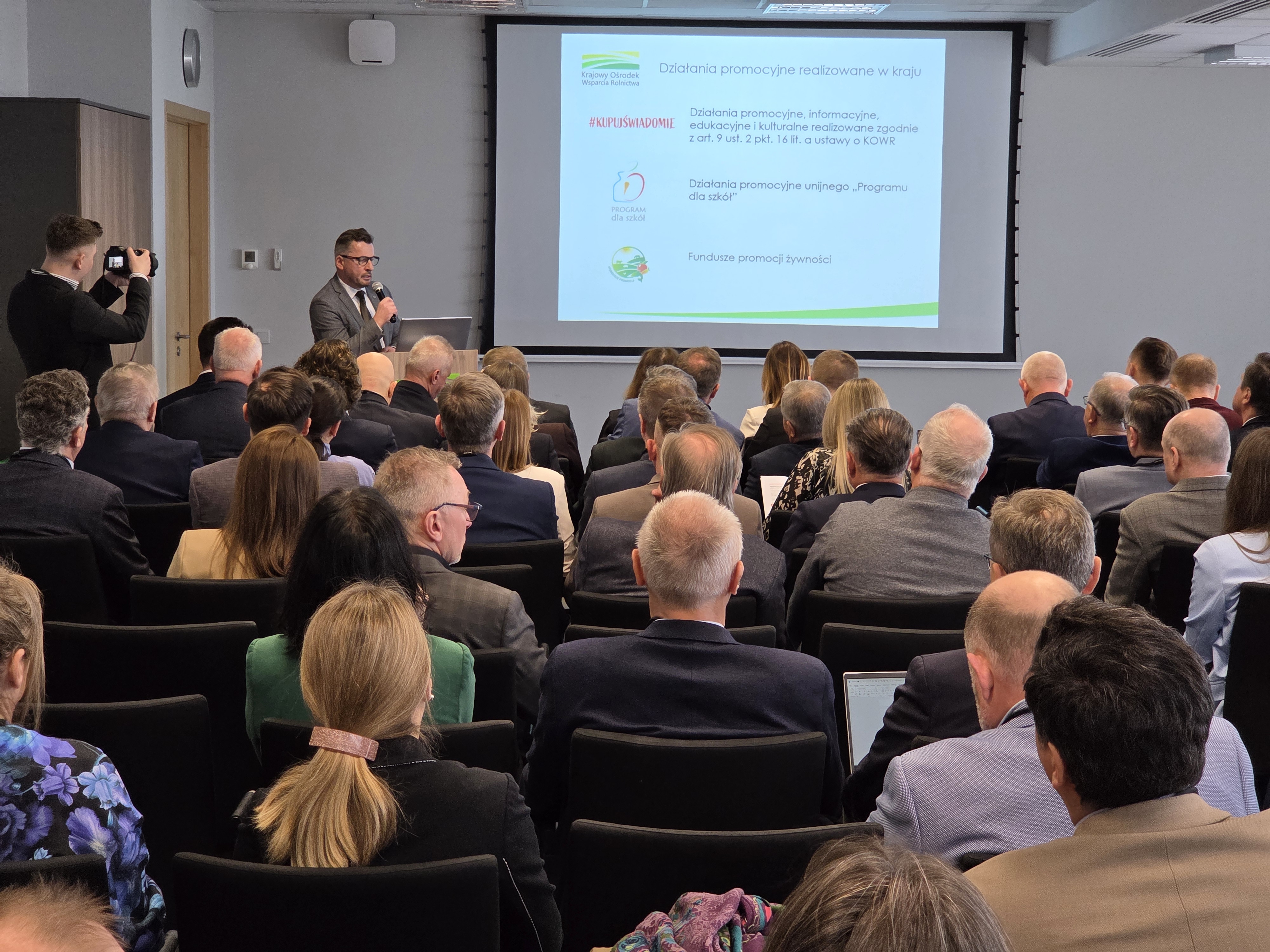 Lucjan Zwolak, Zastępca Dyrektora Generalnego KOWR, przybliżył uczestnikom ideę powołania Grupy roboczej ds. promocji polskiej żywności oraz omówił działania KOWR. Działania promocyjne realizowane w kraju, w tym realizowane pod hasłem #KupujŚwiadomie, zaprezentował Witold Wierzbiński, Dyrektor Departamentu Rozwoju Rynku KOWR, z kolei działania zagraniczne, m.in. organizację stoisk promocyjnych oraz spotkań B2B, omówił Piotr Kondraciuk, Dyrektor Departamentu Wsparcia Eksportu KOWR. O innowacjach w rolnictwie, w tym odnawialnych źródłach energii, mówił Łukasz Kaliński, Dyrektor Departamentu Innowacji.