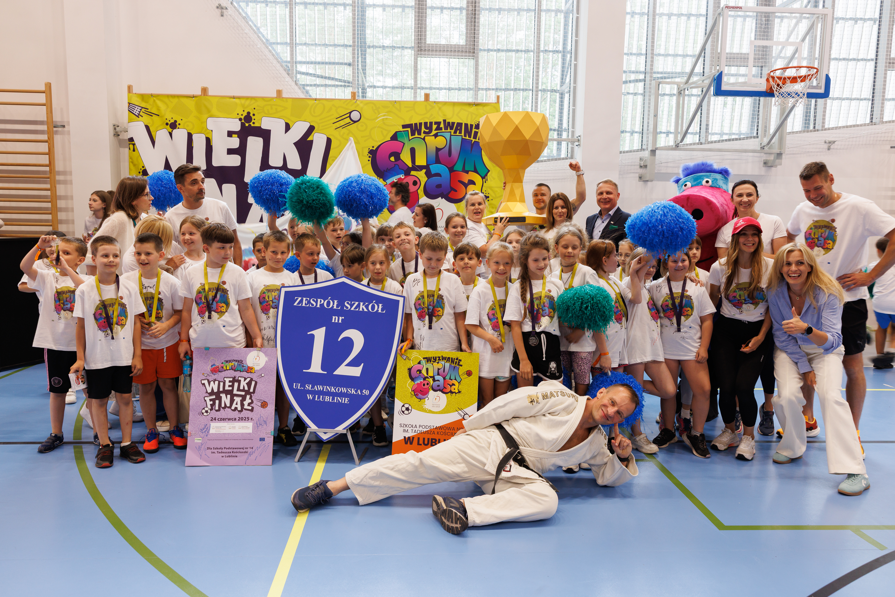 Pod czujnym okiem ambasadorów konkursu – Magdaleny Grzywy, Moniki Pyrek i Pawła Wojciechowskiego oraz prowadzącego Marka Plawgi rywalizowały ze sobą drużyny z 6 szkół finalistów sportowego wyzwania: Szkoły Podstawowej nr 3 im. Tadeusza Kościuszki w Gołdapi, Sportowej Szkoły Podstawowej nr 19 w Tychach, Szkoły Podstawowej nr 14 im. Tadeusza Kościuszki w Lublinie, Szkoły Podstawowej nr 4 im. Henryka Sienkiewicza w Świdnicy, Publicznej Szkoły Podstawowej im. Polskich Patriotów w Drwalewie. Finalistów ze Szkoły Podstawowej nr 6 im. Henryka Sienkiewicza w Pruszkowie, którzy nie mogli wziąć udziału w wydarzeniu, dzielnie zastąpili uczestnicy konkursu z Miejskiej Szkoły Podstawowej nr 2 w Piekarach Śląskich. Drużynowym konkurencjom towarzyszyły ogromne emocje i mnóstwo pozytywnej energii, a uczestników dopingował ulubieniec dzieci – Chrumas!