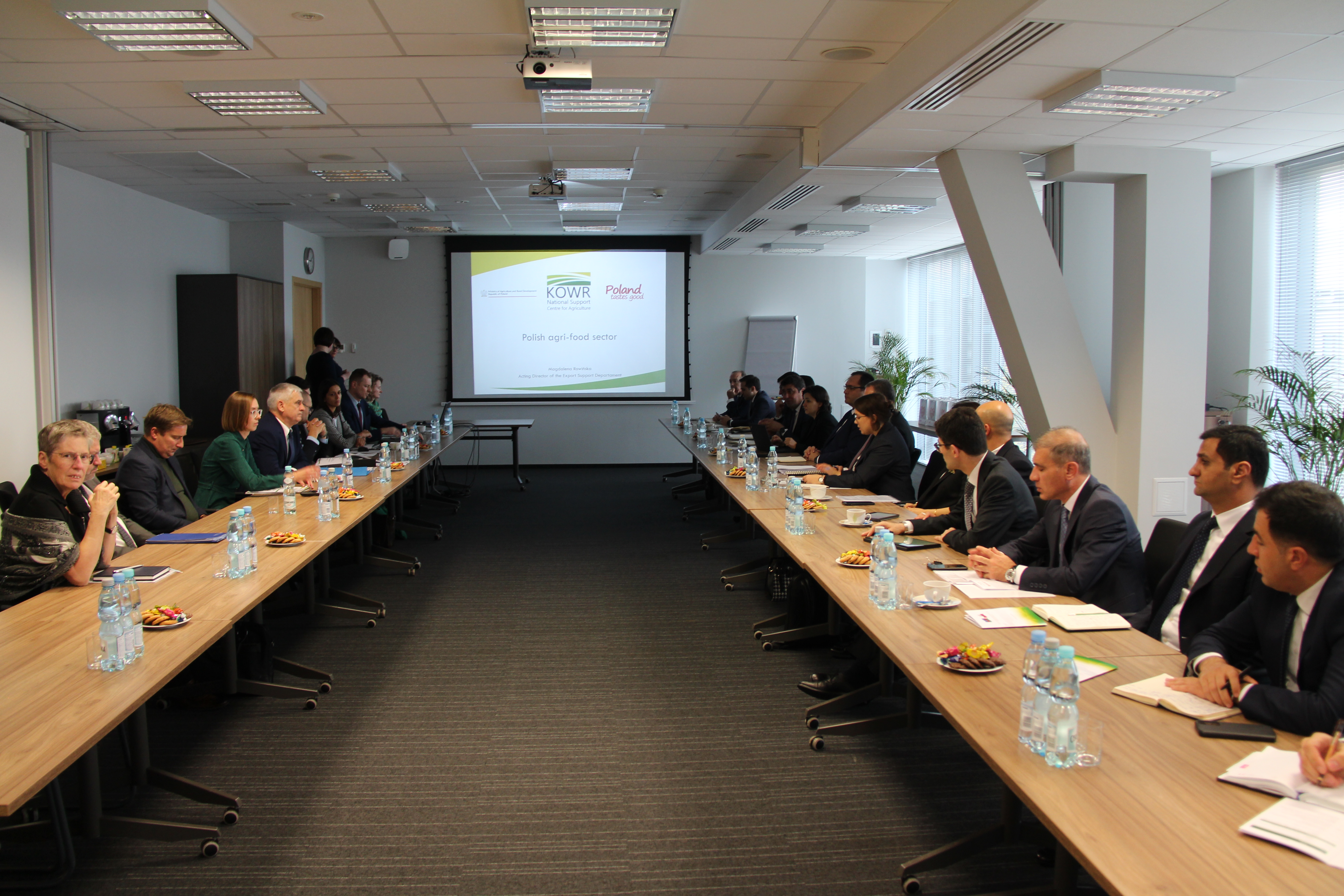 6 listopada br. w siedzibie Krajowego Ośrodka Wsparcia Rolnictwa odbyło się spotkanie z delegacją wysokiego szczebla z Azerbejdżanu. Delegacji przewodniczył Shahmar Movsumov, asystent Prezydenta Republiki Azerbejdżanu, szef Departamentu Spraw Gospodarczych i Innowacyjnej Polityki Rozwoju Administracji Prezydenta Republiki Azerbejdżanu. Wśród członków delegacji znalazł się również minister rolnictwa Azerbejdżanu Majnun Mammadov i jego zastępca Ilhama Gadimova.