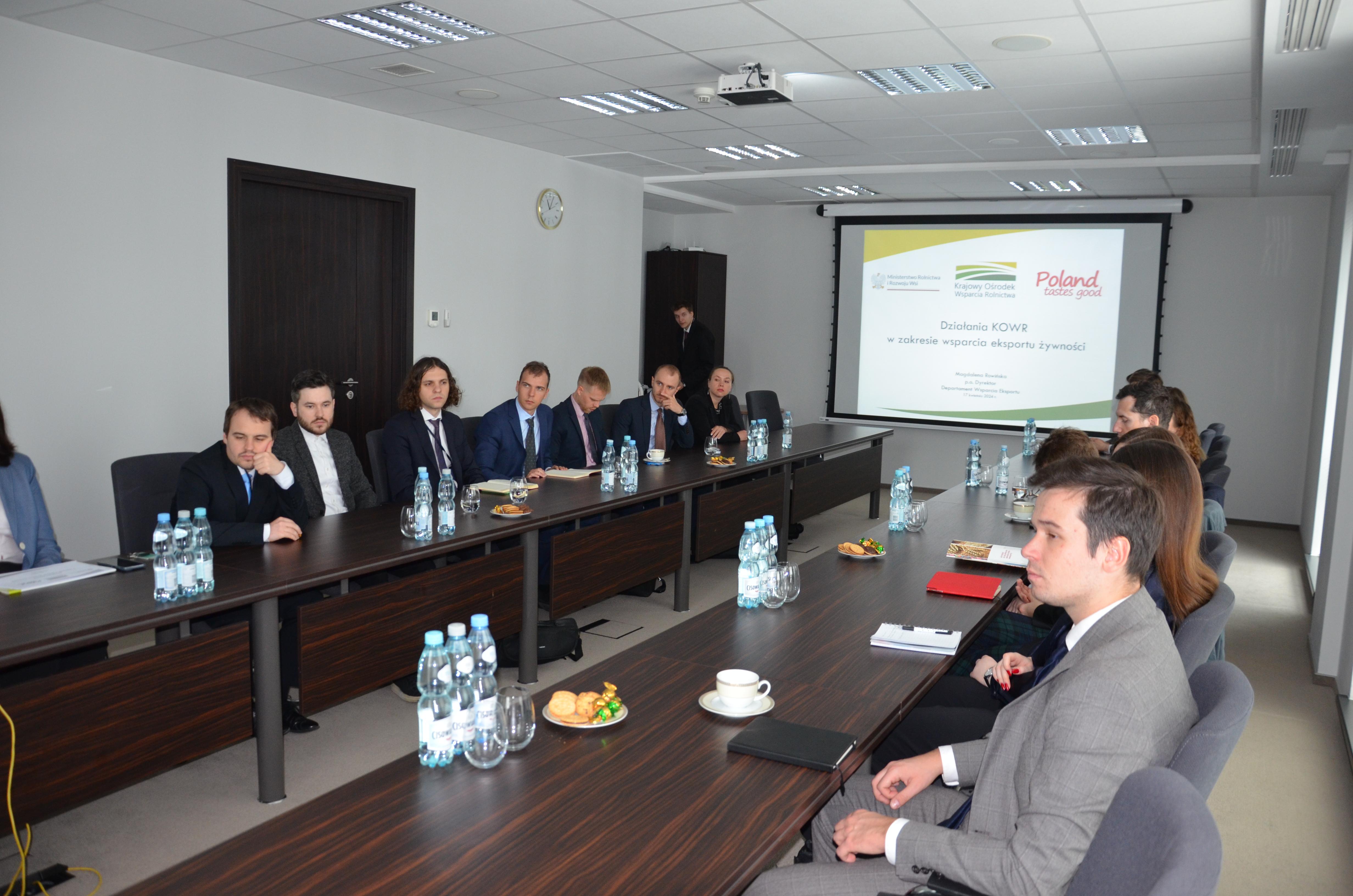 Podczas spotkania przyszli dyplomaci poszerzyli swoją wiedzę w zakresie działalności KOWR. Szczegółowo omówiono zagadnienia dotyczące zagranicznej promocji rolno-spożywczej – obszaru, w którym KOWR najczęściej podejmuje współpracę z placówkami dyplomatycznymi. Jak zauważył Lucjan Zwolak, Zastępca Dyrektora Generalnego KOWR, niezbędna jest synergia działań wszystkich instytucji oraz kooperacja z szeroko pojętym biznesem, aby skuteczniej wspierać interesy polskiego rolnika i rolnictwa.