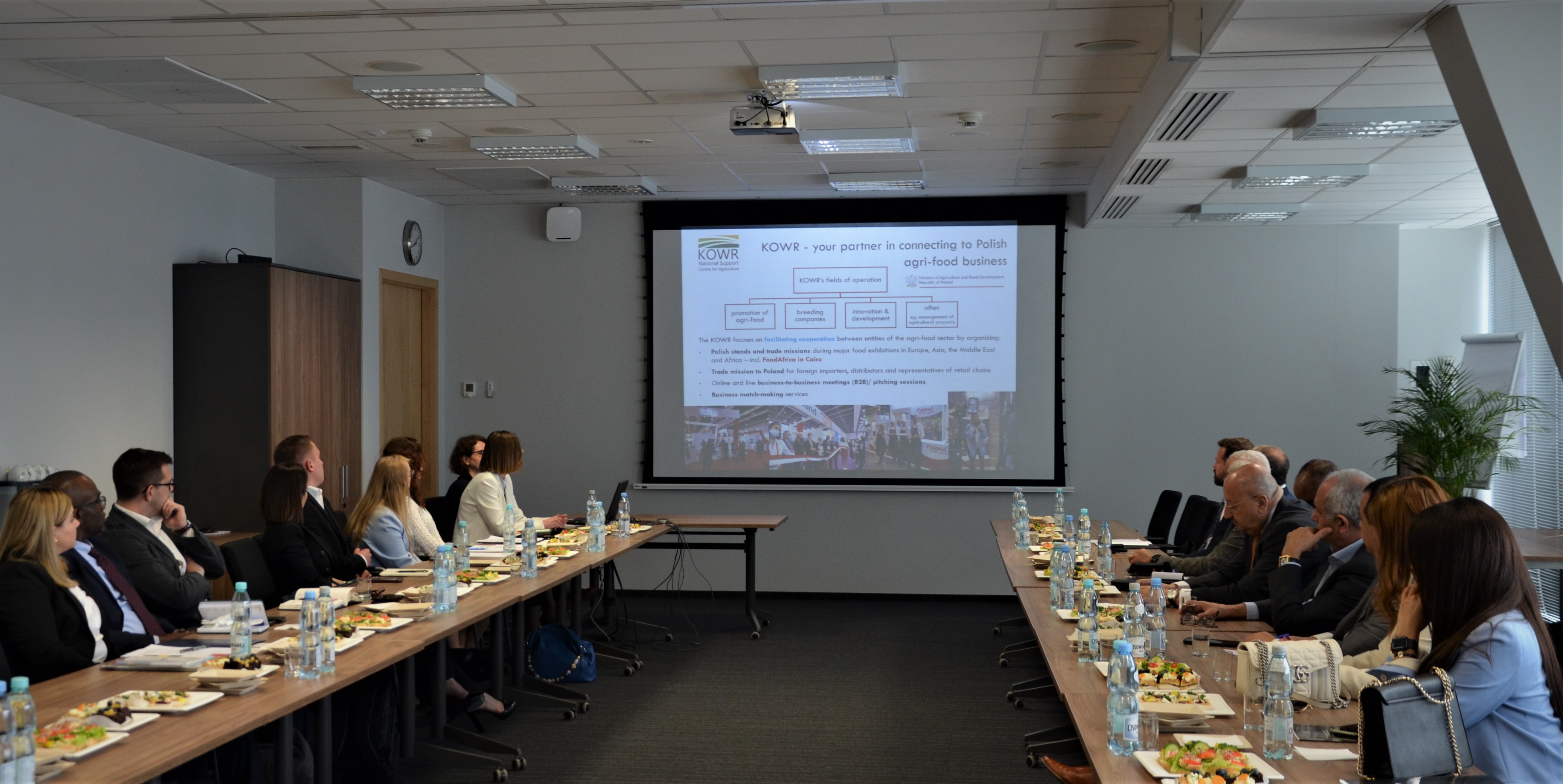 22 maja 2023 r. w siedzibie Krajowego Ośrodka Wsparcia Rolnictwa odbyło się spotkanie z udziałem polskich przedsiębiorców z branży drobiarskiej, przetwórstwa zbóż i nawozów z delegacją przedstawicieli biznesu z Egiptu.