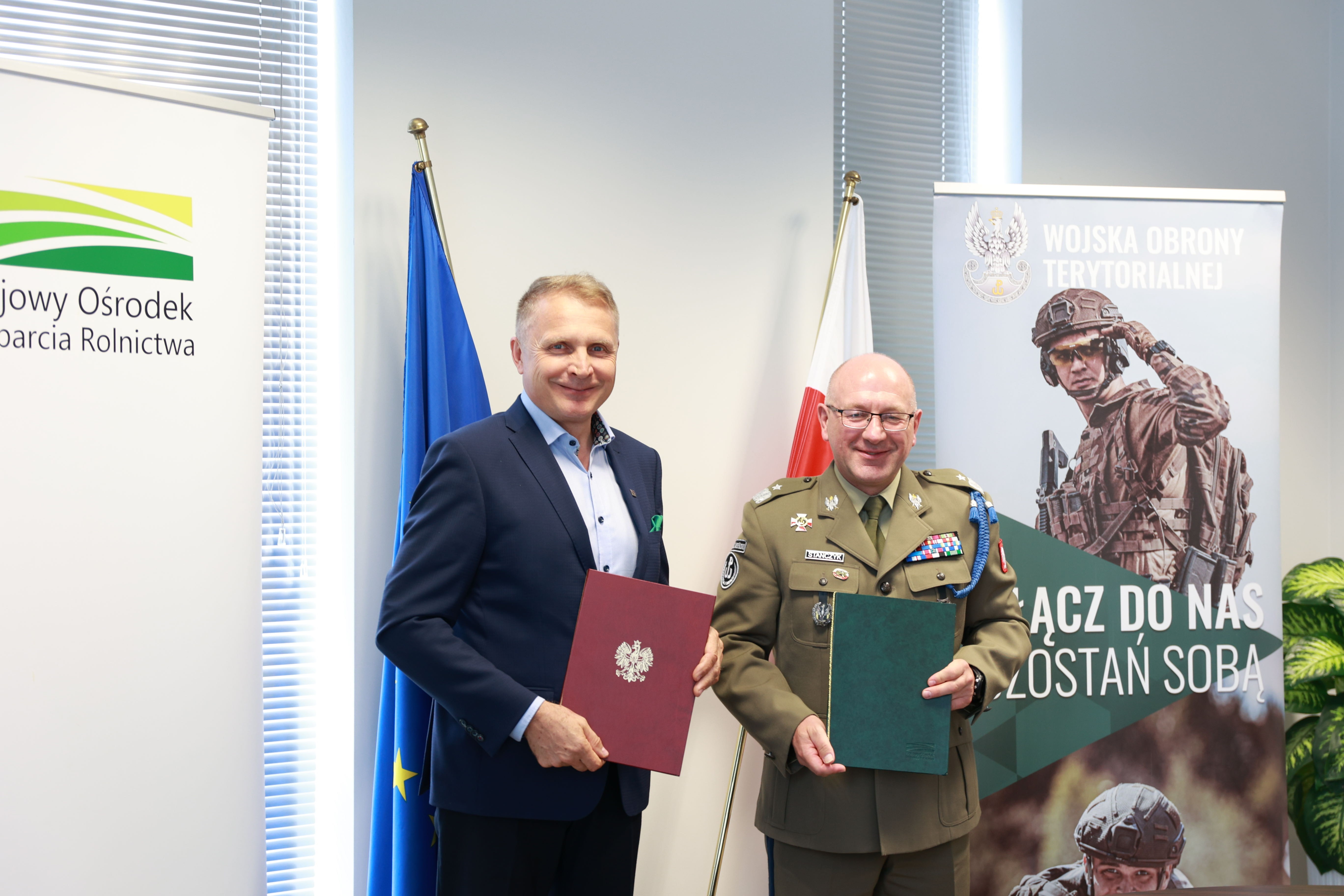 W czwartek 10 lipca br. w siedzibie KOWR, podpisano porozumienie o współpracy z Dowództwem Wojsk Obrony Terytorialnej. Dokument podpisali Henryk Smolarz, Dyrektor Generalny KOWR, i gen. bryg. dr Krzysztof Stańczyk, Dowódca Wojsk Obrony Terytorialnej RP.