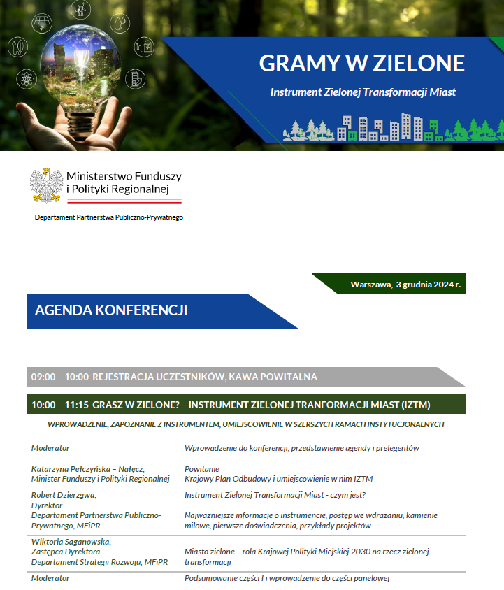 Ministerstwo Funduszy i Polityki Regionalnej zaprasza na konferencję „Gramy w zielone” - Instrument Zielonej Transformacji Miast.