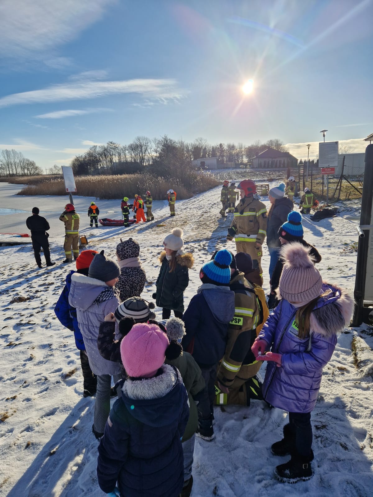 W dniu 16.01. 2024r. w Ostrowąsie odbyły się ćwiczenia praktyczne z zakresu ratownictwa lodowego na poziomie podstawowym na terenie zamarzniętego zbiornika wodnego. Ćwiczenia rozpoczęły się od udzielenia instruktażu na temat bezpieczeństwa na obszarach zalodzonych, zabezpieczenia ratowników oraz zasad ewakuacji osób poszkodowanych z zamarzniętych akwenów. Głównym celem ćwiczeń było dotarcie ratowników w ubraniach niezatapialnych do osoby, pod którą załamał się lód i jej ewakuację na brzeg z zastosowaniem odpowiedniej techniki podejmowania poszkodowanego wraz z natychmiastowym wdrożeniem odpowiednich procedur z zakresu kwalifikowanej pierwszej pomocy uwzględniających stan hipotermii. Do ćwiczeń wykorzystano sprzęt będący na wyposażeniu pojazdów ratowniczo-gaśniczych. W ćwiczeniach brali udział strażacy PSP z JRG 1 Aleksandrów Kujawski i JRG 2 Ciechocinek oraz druhowie OSP z Straszewo, Raciążka oraz Opoczki.