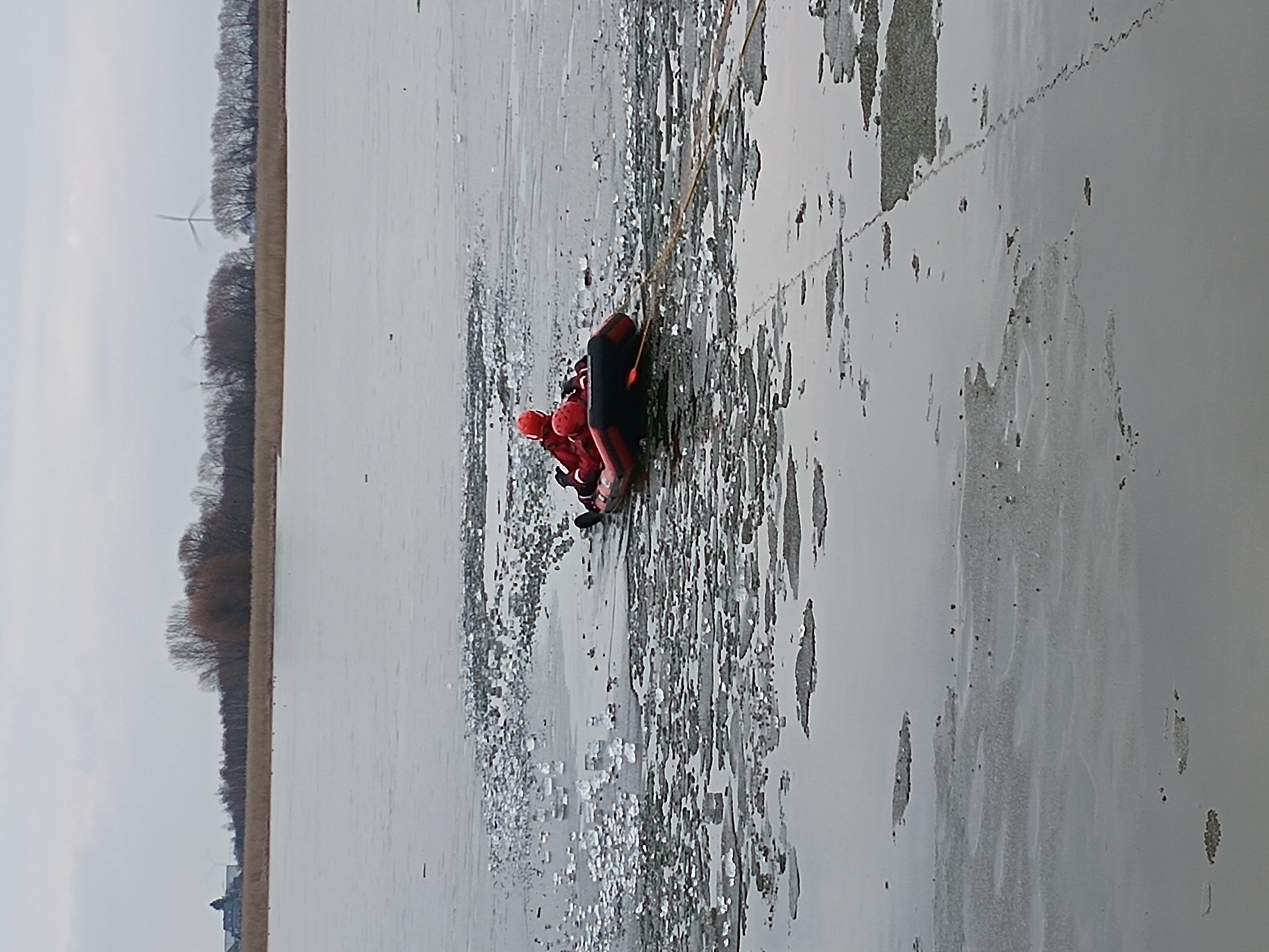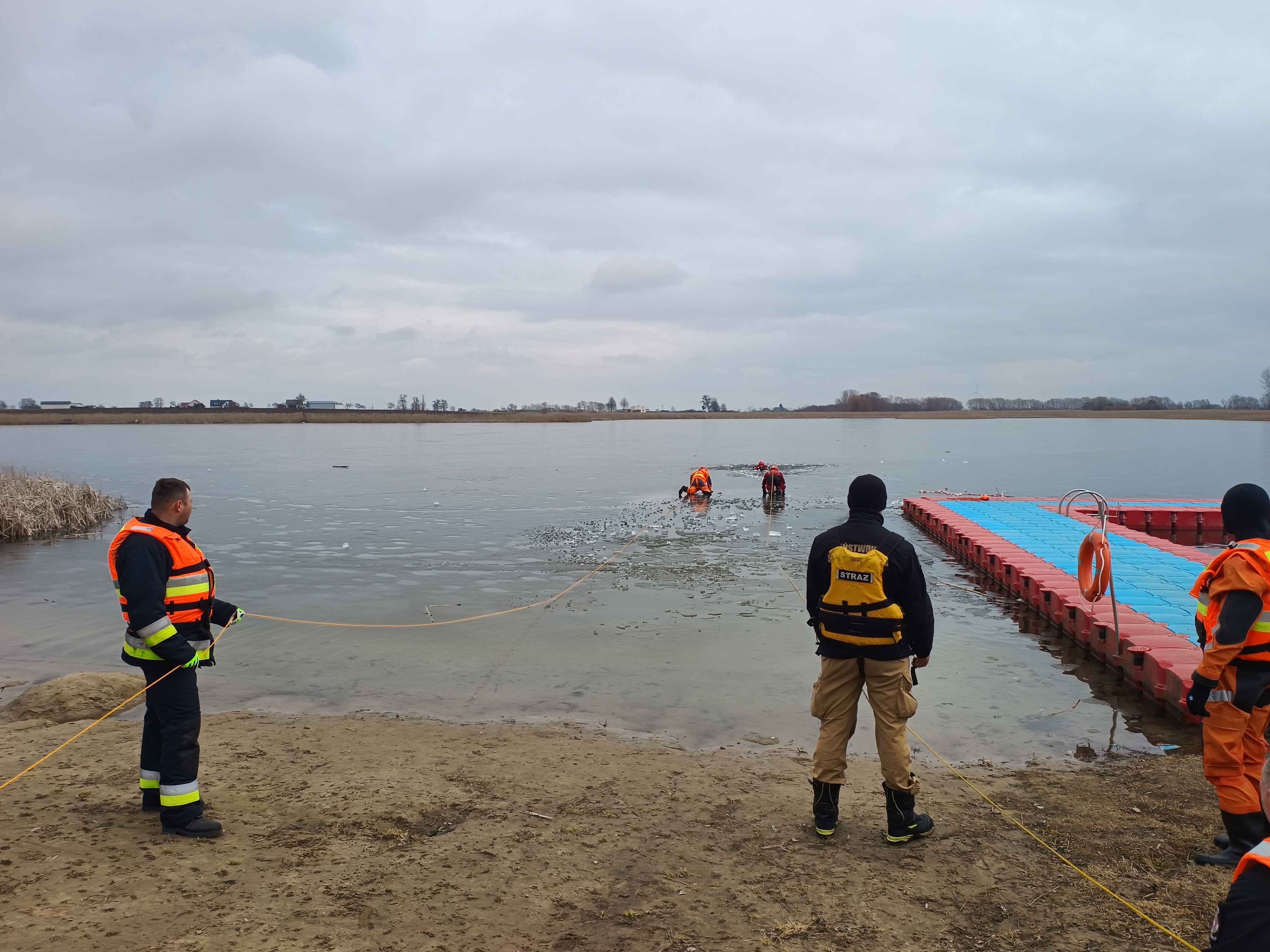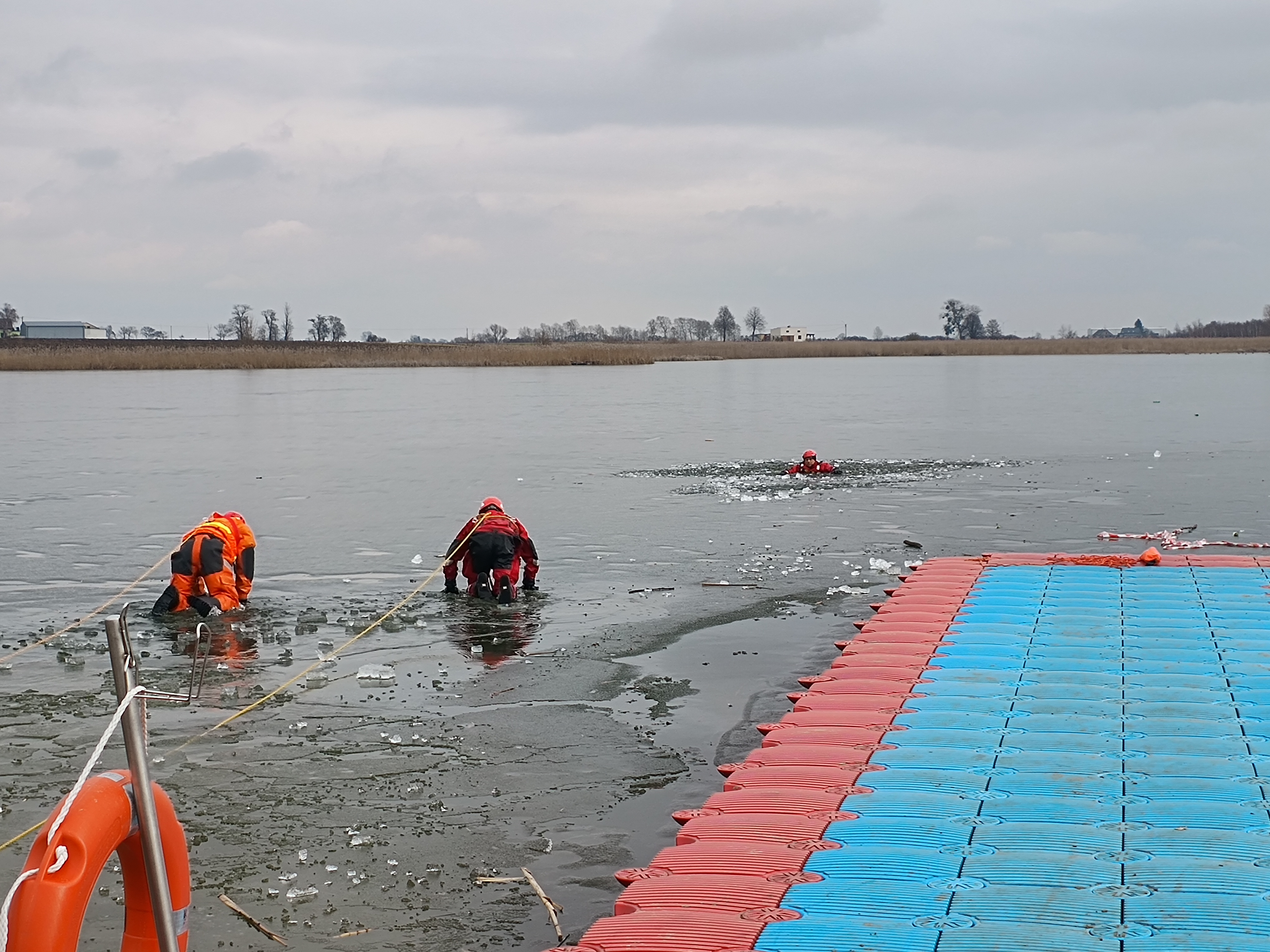 Ćwiczenia strażaków z ratownictwa lodowego
