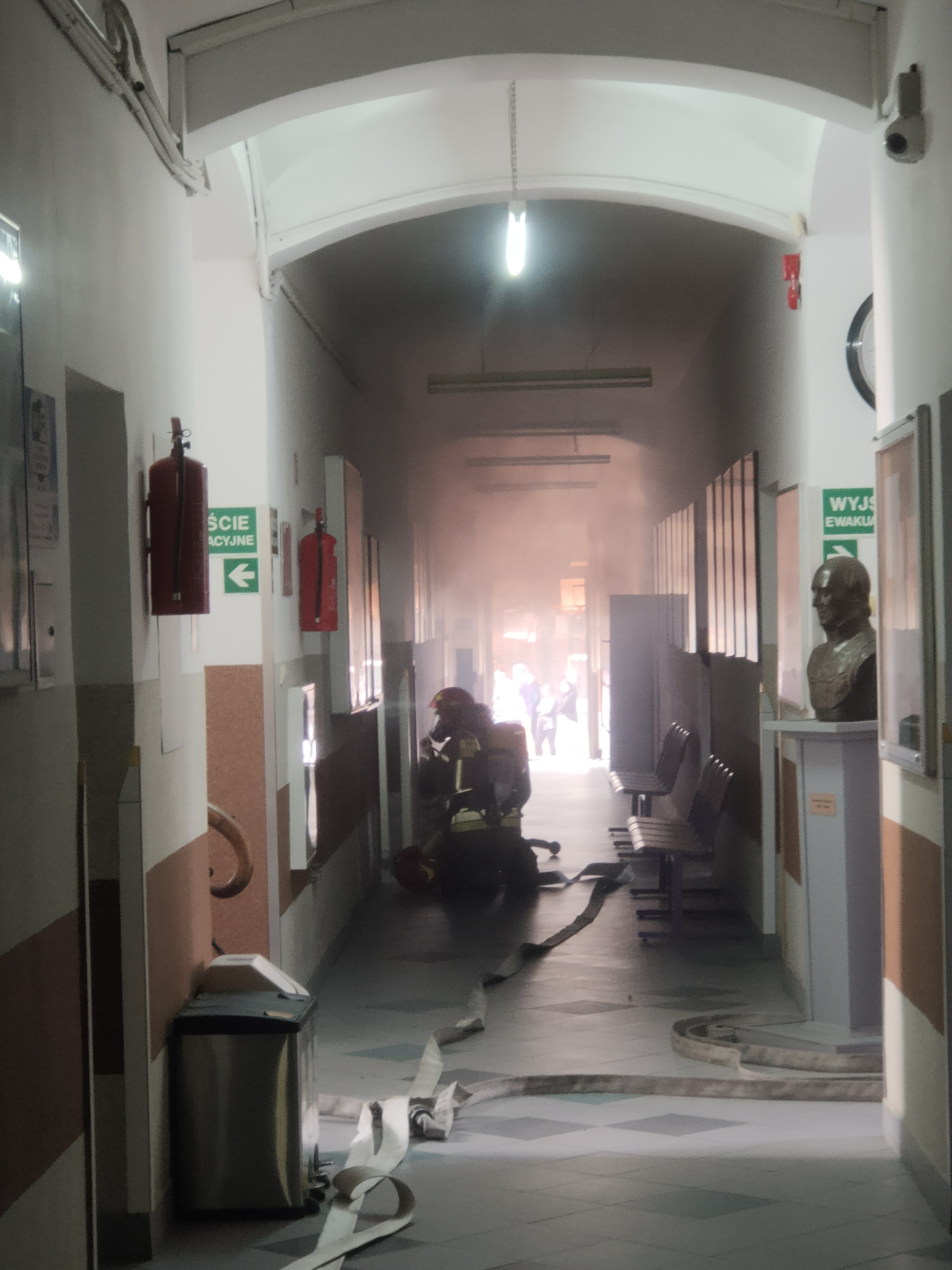We wtorek 24 października 2023roku o godz. 10: 00 do Stanowiska Kierowania Komendanta Powiatowego PSP w Aleksandrowie Kujawskim wpłynęło zgłoszenie o zadymieniu w Liceum ogólnokształcącym w Ciechocinku przy ulicy Kopernika 1. Do akcji zostały zadysponowane dwa zastępy Państwowej Straży Pożarnej z JRG 2 w Ciechocinku. Po dotarciu na miejsce zdarzenia dowódca potwierdził zgłoszenie i przystąpiono do realizacji ćwiczeń obiektowych. Kierujący Działaniami Ratowniczymi po przeprowadzonym rozpoznaniu ustalił, że doszło do zaprószenia ognia w jednym z pomieszczeń. Uczniowie oraz pracownicy szkoły ewakuowali się w miejsce bezpieczne przed przybyciem Jednostek Ochrony Przeciwpożarowej.