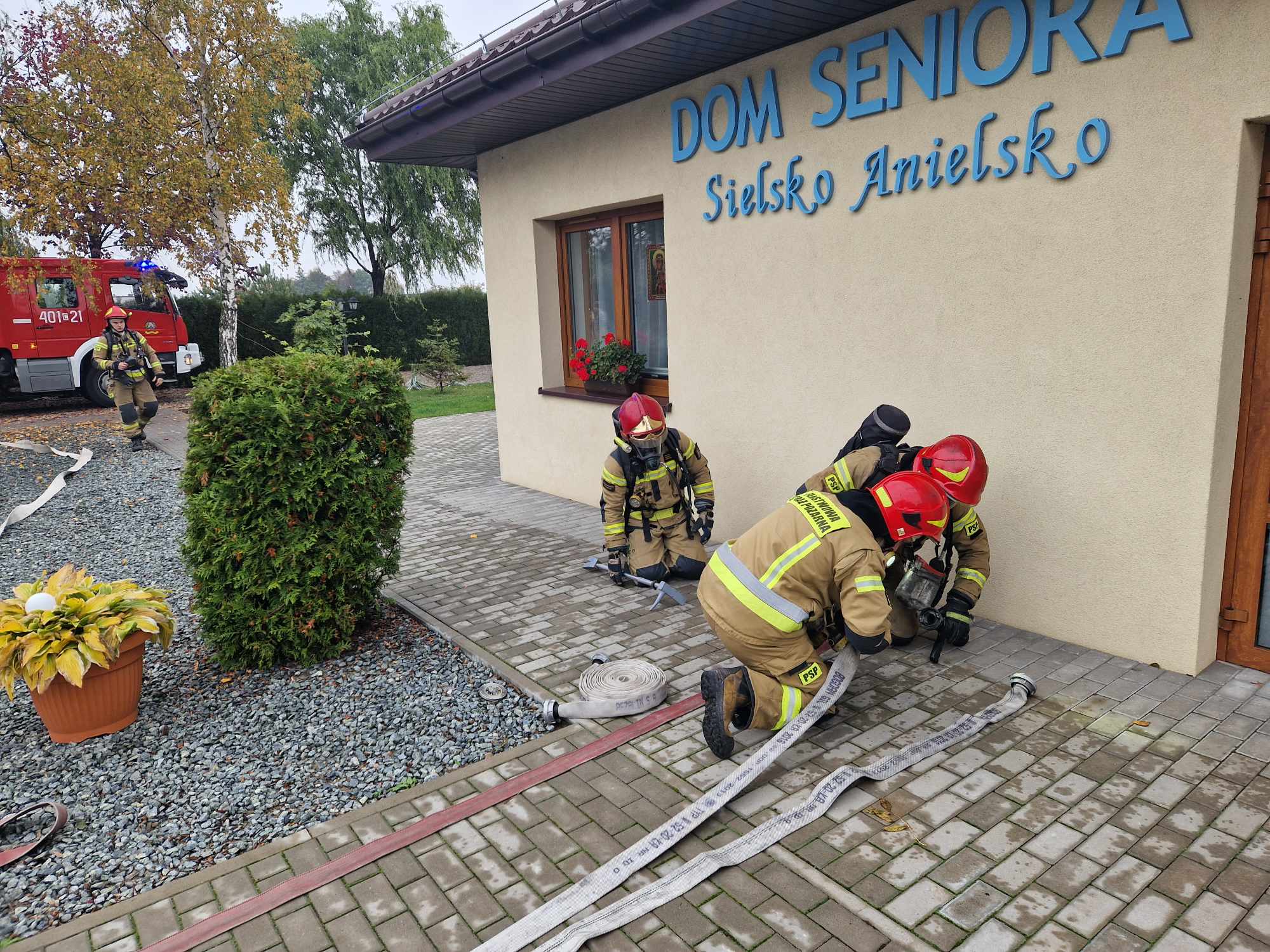 We wtorek 25 października 2023roku o godz. 11: 57 do Stanowiska Kierowania Komendanta Powiatowego PSP w Aleksandrowie Kujawskim wpłynęło zgłoszenie o zadymieniu w Domu Seniora Sielsko Anielsko w Sędzinie. Do akcji zostały zadysponowane dwa zastępy Państwowej Straży Pożarnej z Aleksandrowa Kujawskiego. Po dotarciu na miejsce zdarzenia dowódca potwierdził zgłoszenie i przystąpiono do realizacji ćwiczeń obiektowych. Kierujący Działaniami Ratowniczymi po przeprowadzonym wywiadzie z pracownikami Domu Społecznego ustalił, że doszło do zaprószenia ognia w jednym z pomieszczeń. Seniorzy znajdujący się na terenie obiektu zostali ewakuowanie przez pracowników w miejsce bezpieczne przed przybyciem Jednostek Ochrony Przeciwpożarowej.