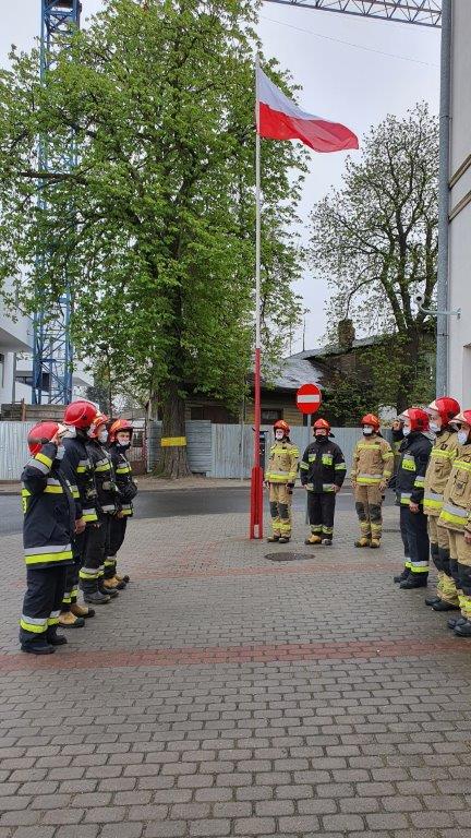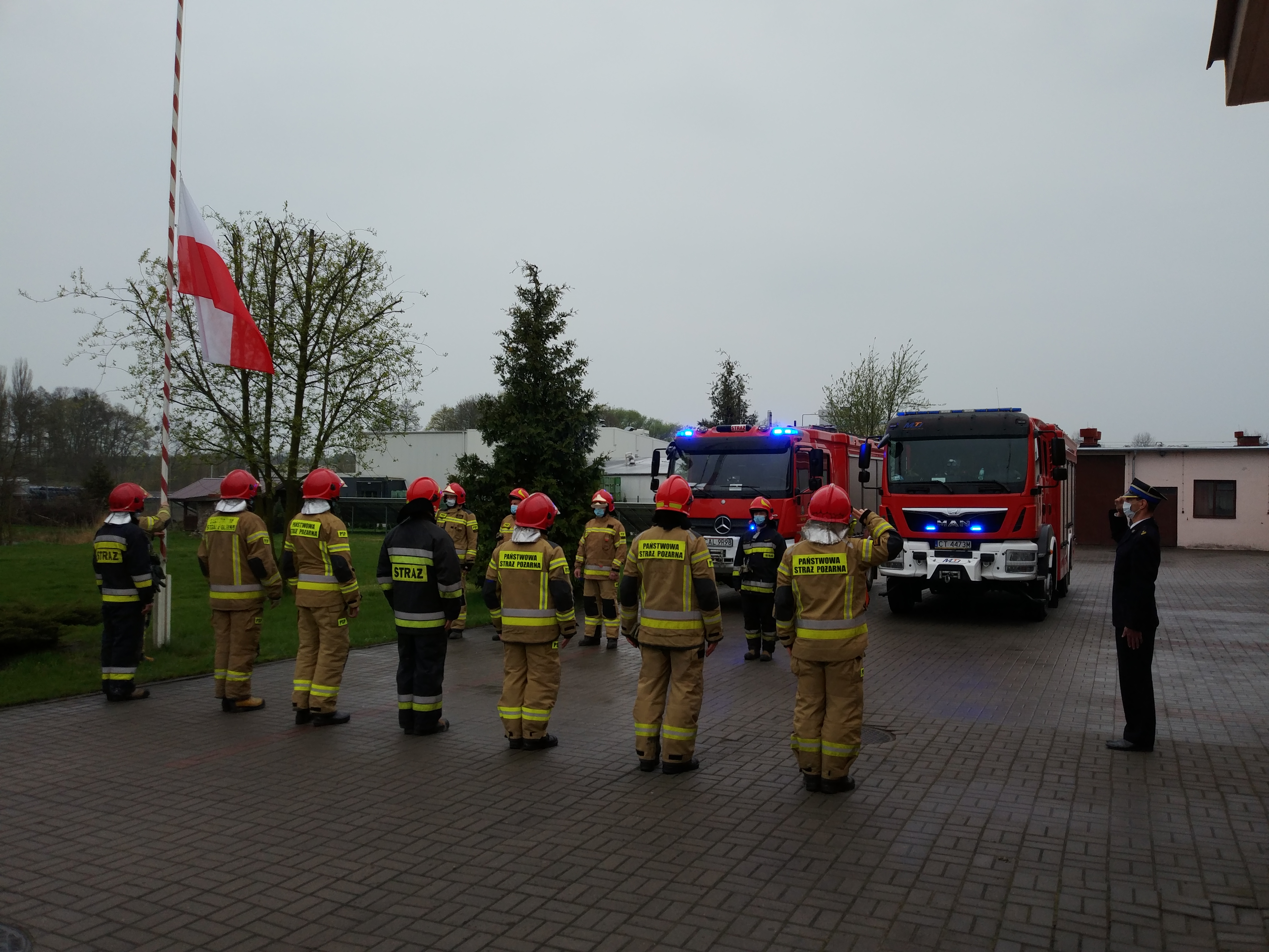 i Ciechocinku odbyły się uroczyste zmiany służby. W obecności mł. bryg. Łukasza Serkowskiego - Zastępcy Komendanta Powiatowego - dokonano podniesienia flagi państwowej na maszt a następnie odczytano rozkazy dzienne dowódców JRG dotyczący zmiany służby.