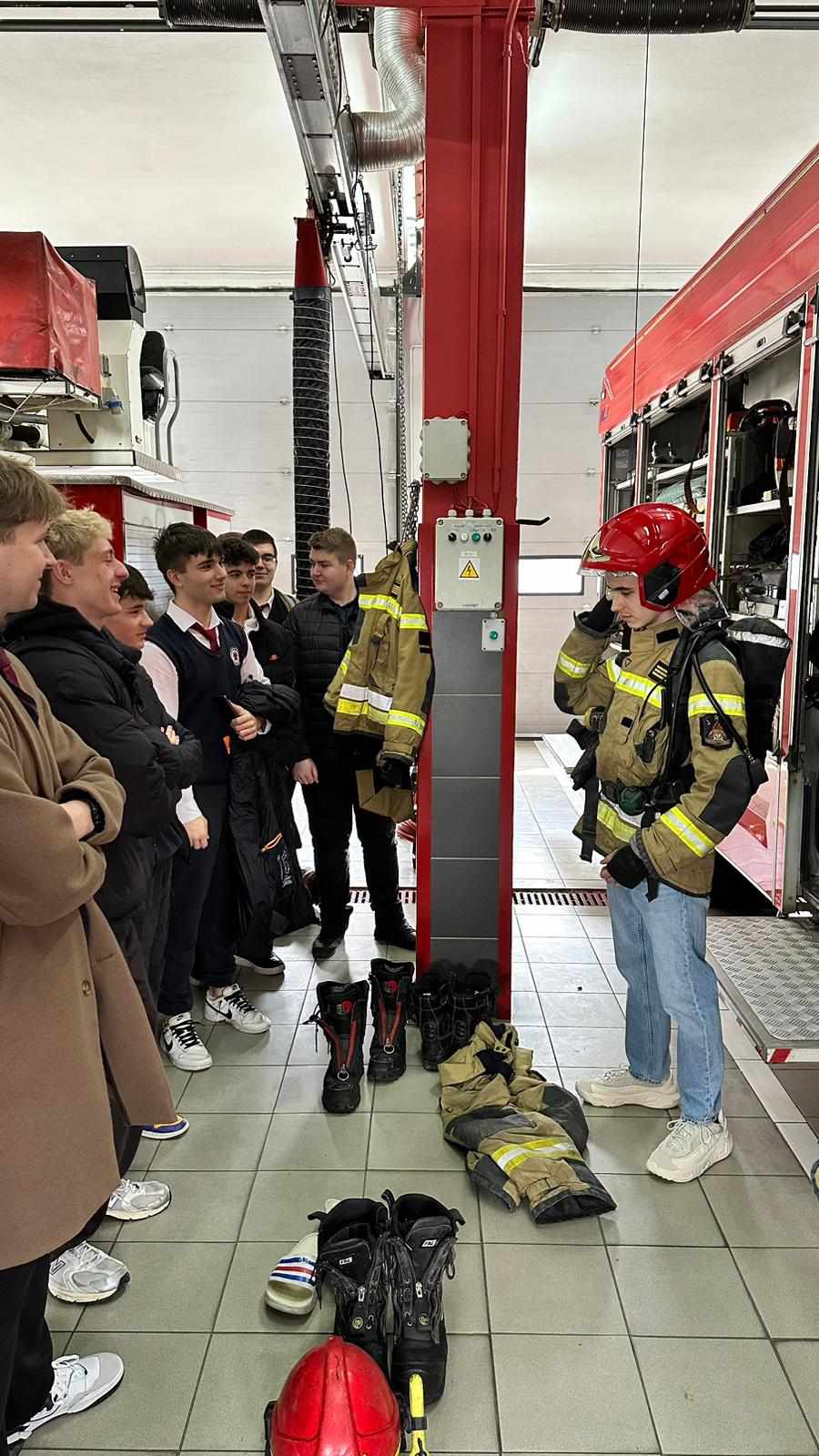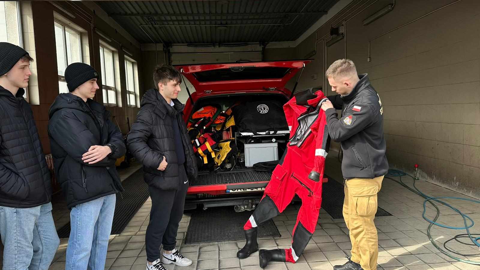 Licealiści na spotkaniu ze strażakami.