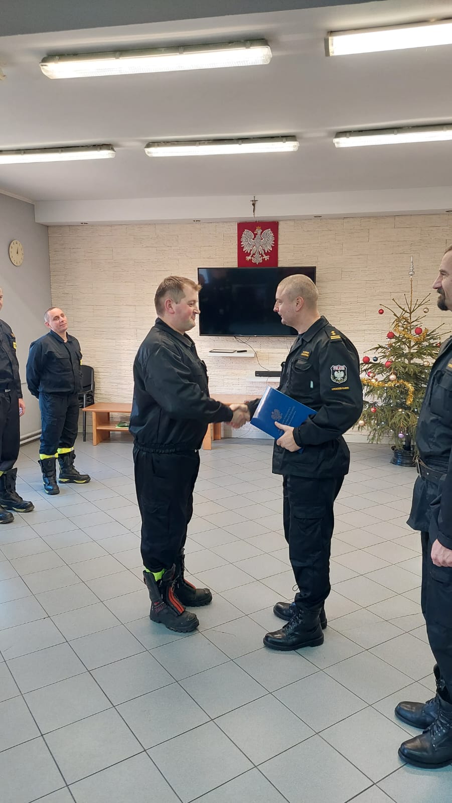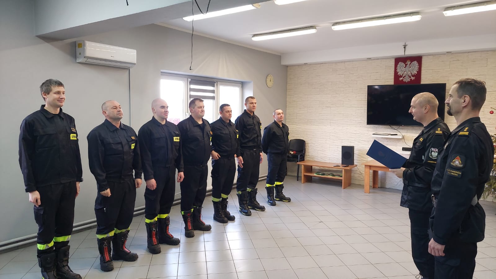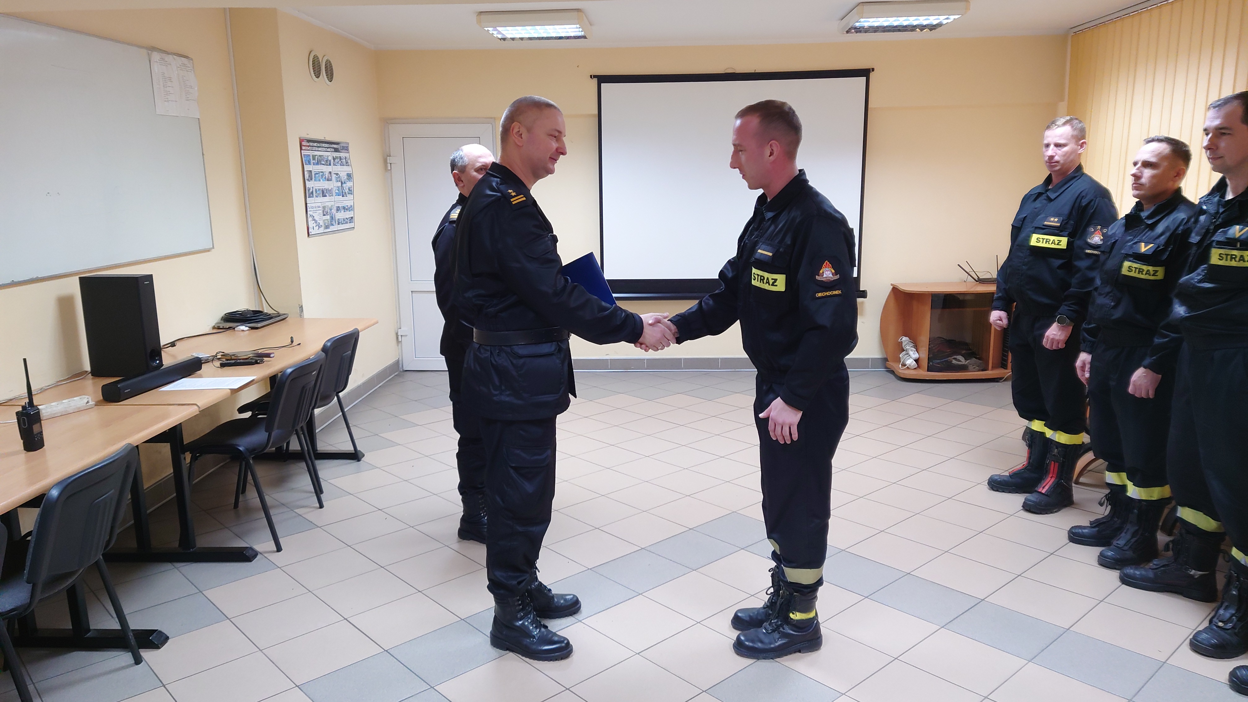 Uroczystości były także okazją do wręczenia decyzji st. str. Sebastianowi Szymeckiemu i st. str. Krzysztofowi Kierysowi na mocy których strażacy zostali mianowani w służbie stałej i otrzymali awans na wyższe stanowiska służbowe.