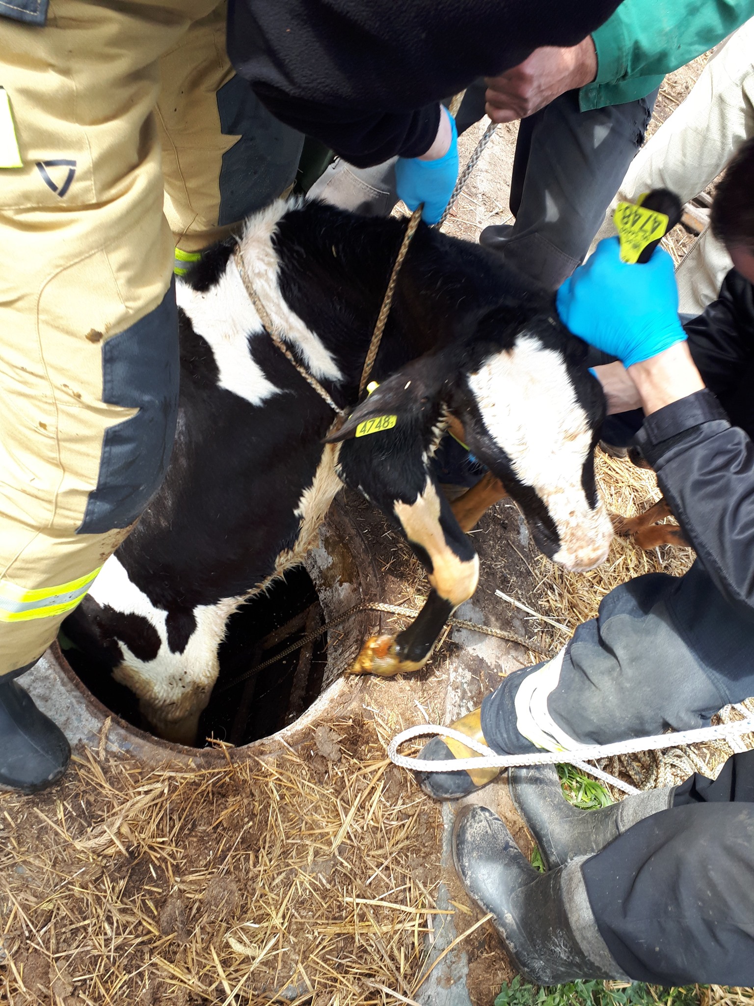 W dniu 05.05.2021 r w godzinach przedpołudniowych strażacy z JRG W Aleksandrowie Kujawskim zostali wezwani do nietypowego zdarzenia. Tym razem pomocy potrzebował mały cielak, który wpadł do zbiornika na gnojowicę. Po przybyciu na miejsce zdarzenia odpowiednio zabezpieczeni strażacy weszli do zbiornika na gnojowicę i przy pomocy liny wydostali cielaka na zewnątrz. Zwierzakowi nic się nie stało. Został przekazany właścicielowi.