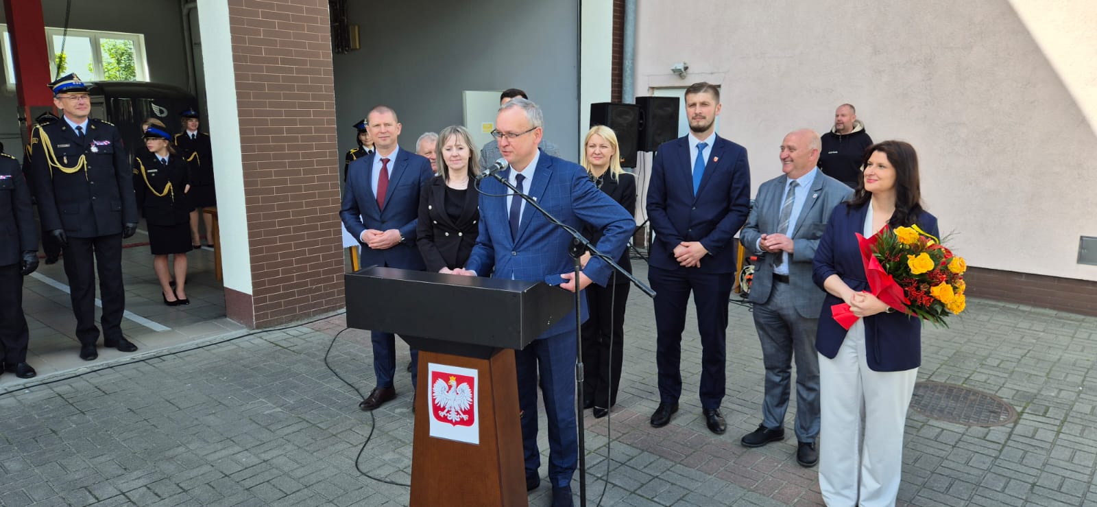 Po uroczystym podniesieniu flagi państwowej i odegraniu Mazurka Dąbrowskiego głos zabrał st. bryg. Adam Malecki - Komendant Powiatowy PSP
