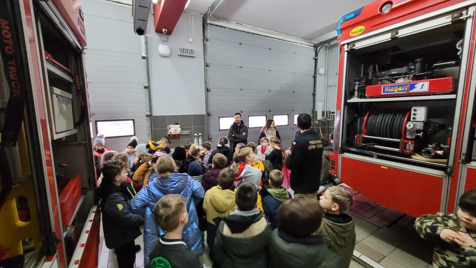 W dniu 12 lutego 2024 r. strażacy z JRG w Aleksandrowie Kujawskim spotkali się z uczestnikami półkolonii organizowanych przy Szkole Podstawowej Zespołu Szkół Towarzystwa Salezjańskiego „ Kolegiom Kujawskie” w Aleksandrowie Kujawskim. W związku z trwającymi feriami zimowymi głównym celem spotkania było omówienie zagrożeń występujących na akwenach wodnych zimą w ramach kampanii „Kręci mnie bezpieczeństwo”. Dzieci zapoznały się z wyposażeniem sprzętowym JRG w Aleksandrowie Kujawskim oraz tokiem pełnienia służby przez strażaków. Zaprezentowany został również sposób alarmowania strażaków do zdarzeń. Dzieci żywo uczestniczyły w spotkaniu chętnie angażując się w rozmowę o bezpieczeństwie podczas ferii oraz zadając dużą ilość pytań związaną z bezpiecznymi feriami oraz służbą w straży pożarnej. Spotkanie zakończyło się podziękowaniami dla strażaków za poświęcony czas oraz codzienną służbę .