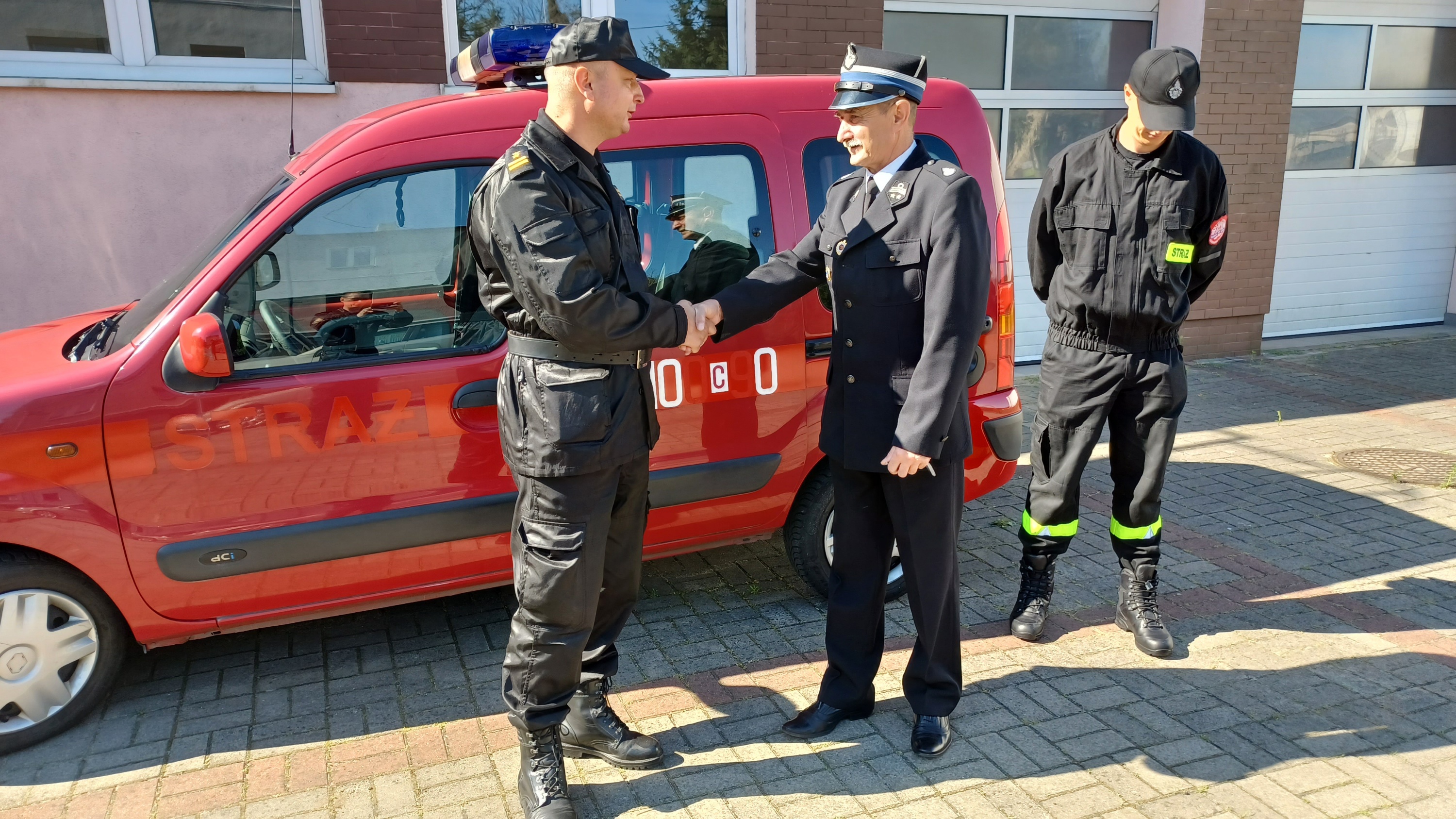 W dniu 3 sierpnia 2021 r. na terenie Komendy Powiatowej Państwowej Straży Pożarnej w Aleksandrowie Kujawskim odbyło się uroczyste przekazanie lekkiego samochodu kwatermistrzowskiego SLKw marki Renault Kangoo. Na podstawie pisma znak WTT.246.17.2021 z dnia 19.07.2021 r. Kujawsko-Pomorskiego Komendanta Wojewódzkiego Państwowej Straży Pożarnej w Toruniu auto zostało przekazane na rzecz Ochotniczej Straży Pożarnej w Aleksandrowie Kujawskim. Symbolicznego przekazania kluczyków na ręce Prezesa OSP Pana Andrzeja Malinowskiego dokonał bryg. mgr inż. Sławomir Zawitowski Komendant Powiatowy PSP w Aleksandrowie Kujawskim.