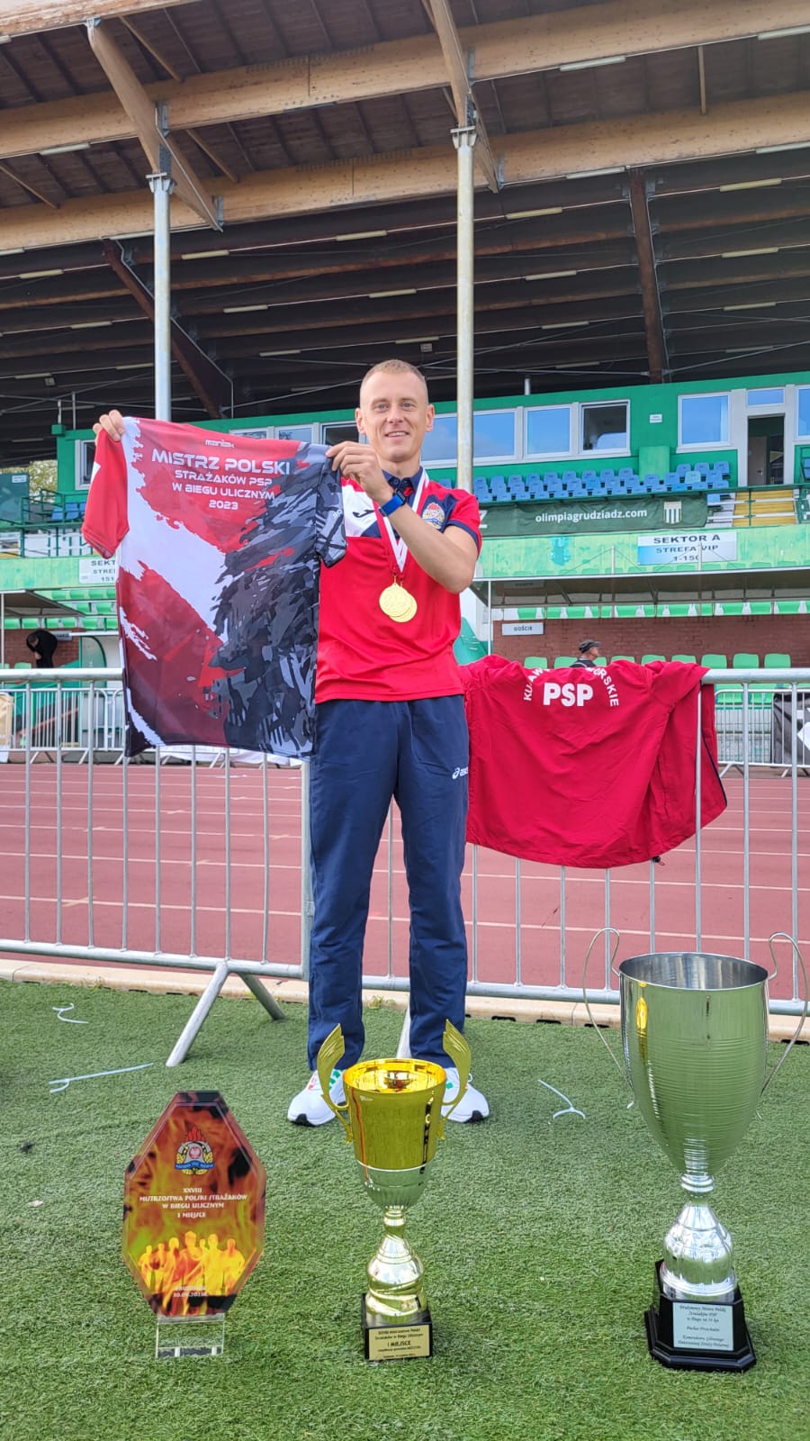 Przemysław Ratajczyk z tutejszej komendy jako strażak nie miał sobie równych – po raz drugi zdobył tytuł Mistrza Polski Strażaków w biegu ulicznym. Cały dystans pokonał w czasie 32 min i 46 sek. Strażacy reprezentujący nasze województwo również zaprezentowali się znakomicie. W kategorii wiekowej B (30-39 lat) 1 miejsce zajął st. asp. Zbigniew Kujawa - KP PSP w Nakle nad Notecią.