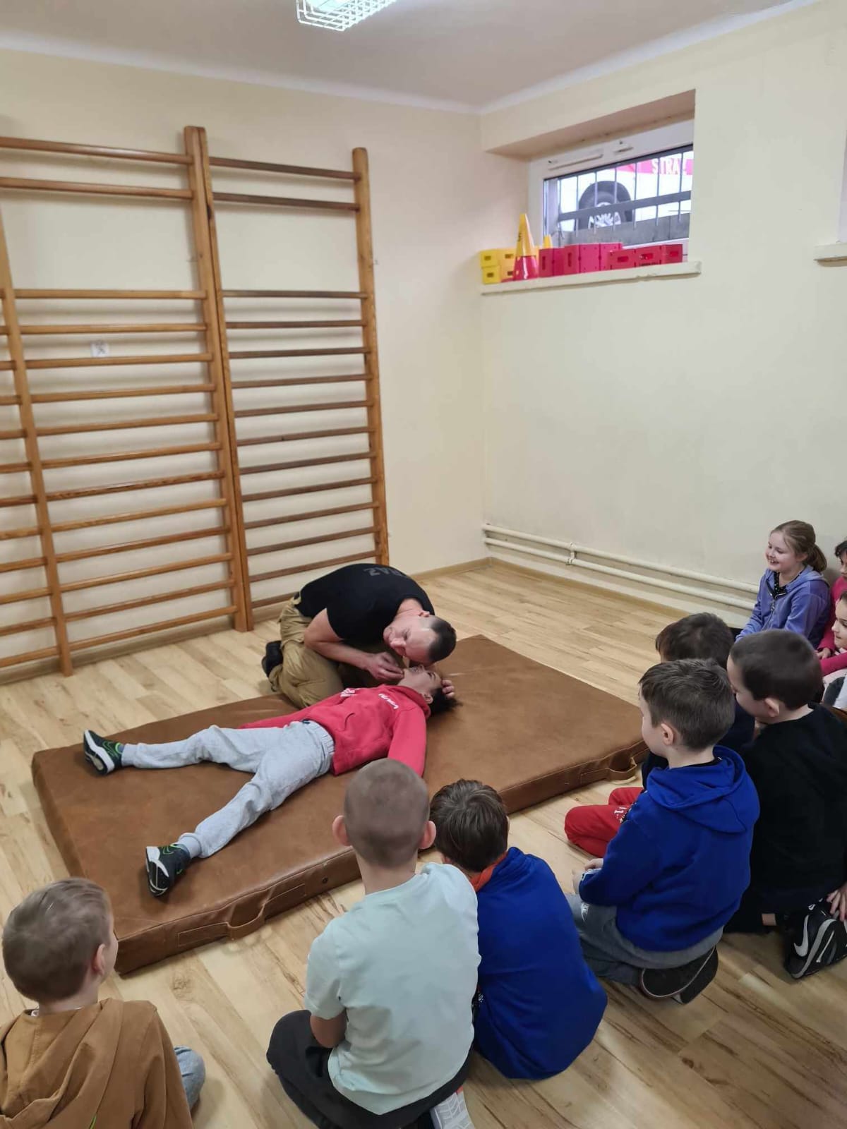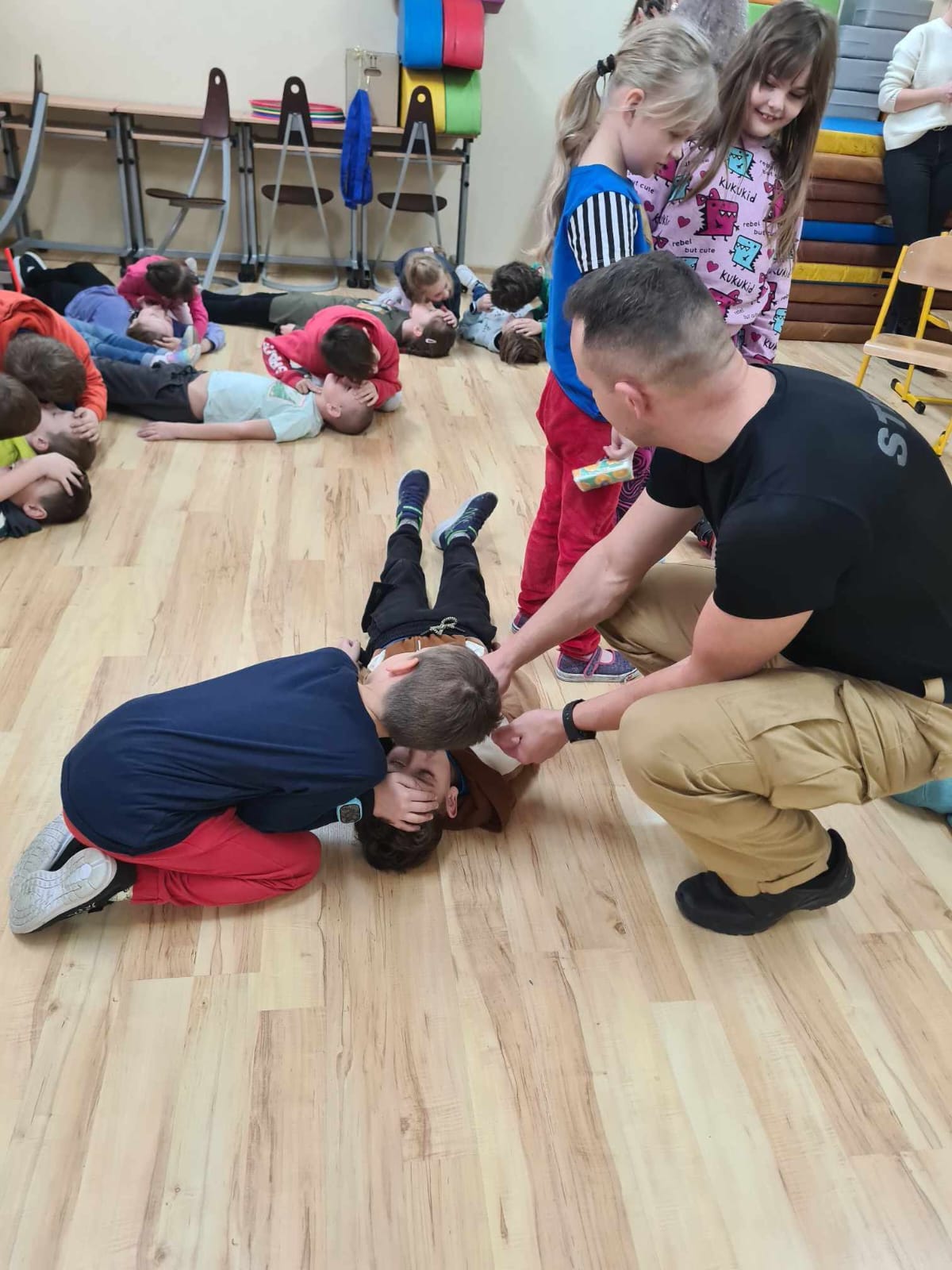 Dnia 11.01.2024 r. odbyło się spotkanie z uczniami klasy pierwszej Szkoły Podstawowej nr. 3 w Ciechocinku. Spotkanie miało charakter szkoleniowy, gdzie przekazano wiadomości z zakresu kwalifikowanej pierwszej pomocy, przypomniano uczniom wykaz aktualnych telefonów alarmowych oraz omówiono prawidłowy sposób zachowania się osoby zgłaszającej z operatorem numeru 112. W części praktycznej uczniowie uczyli się ułożenia osoby nieprzytomnej oddychającej
