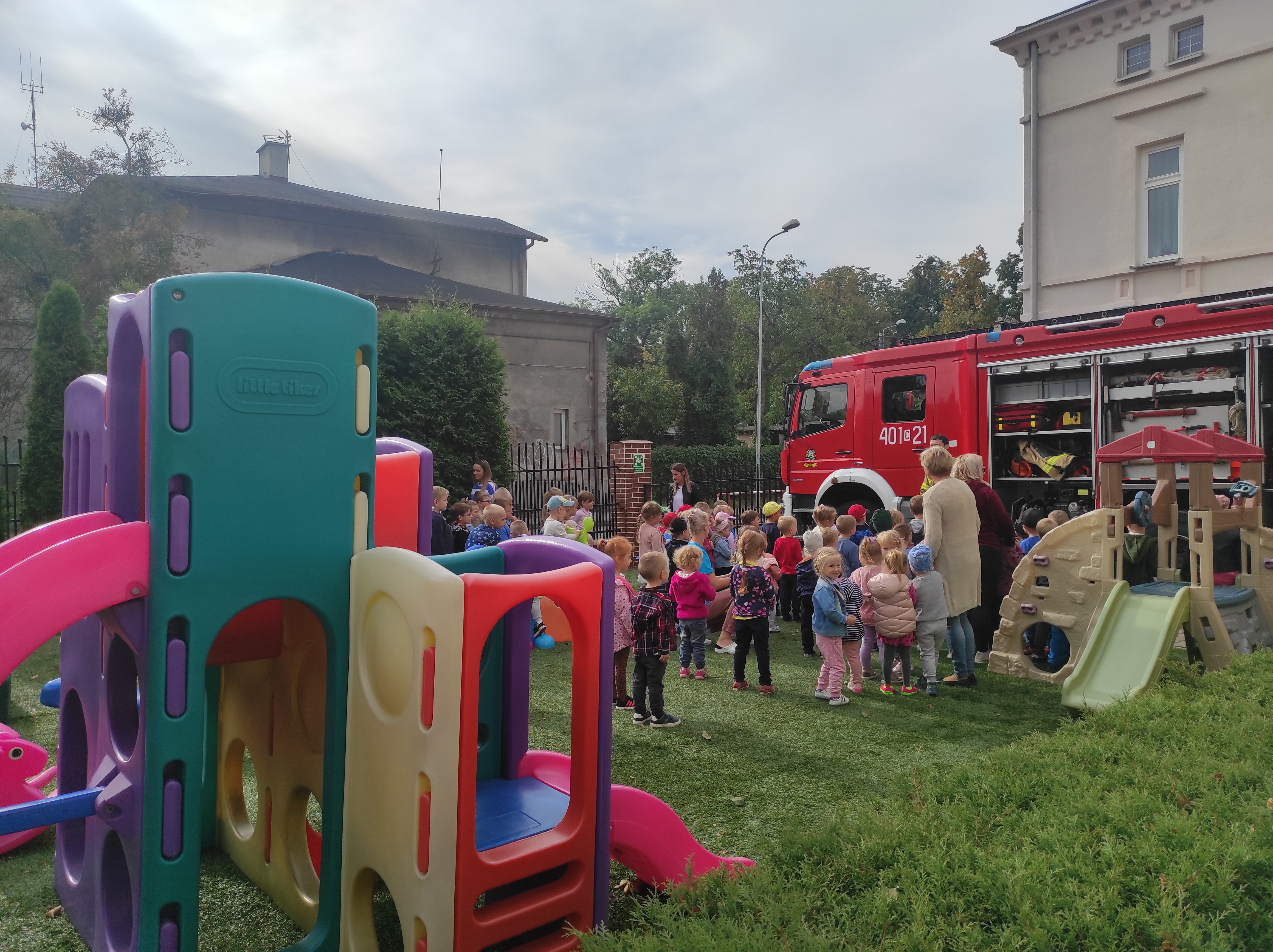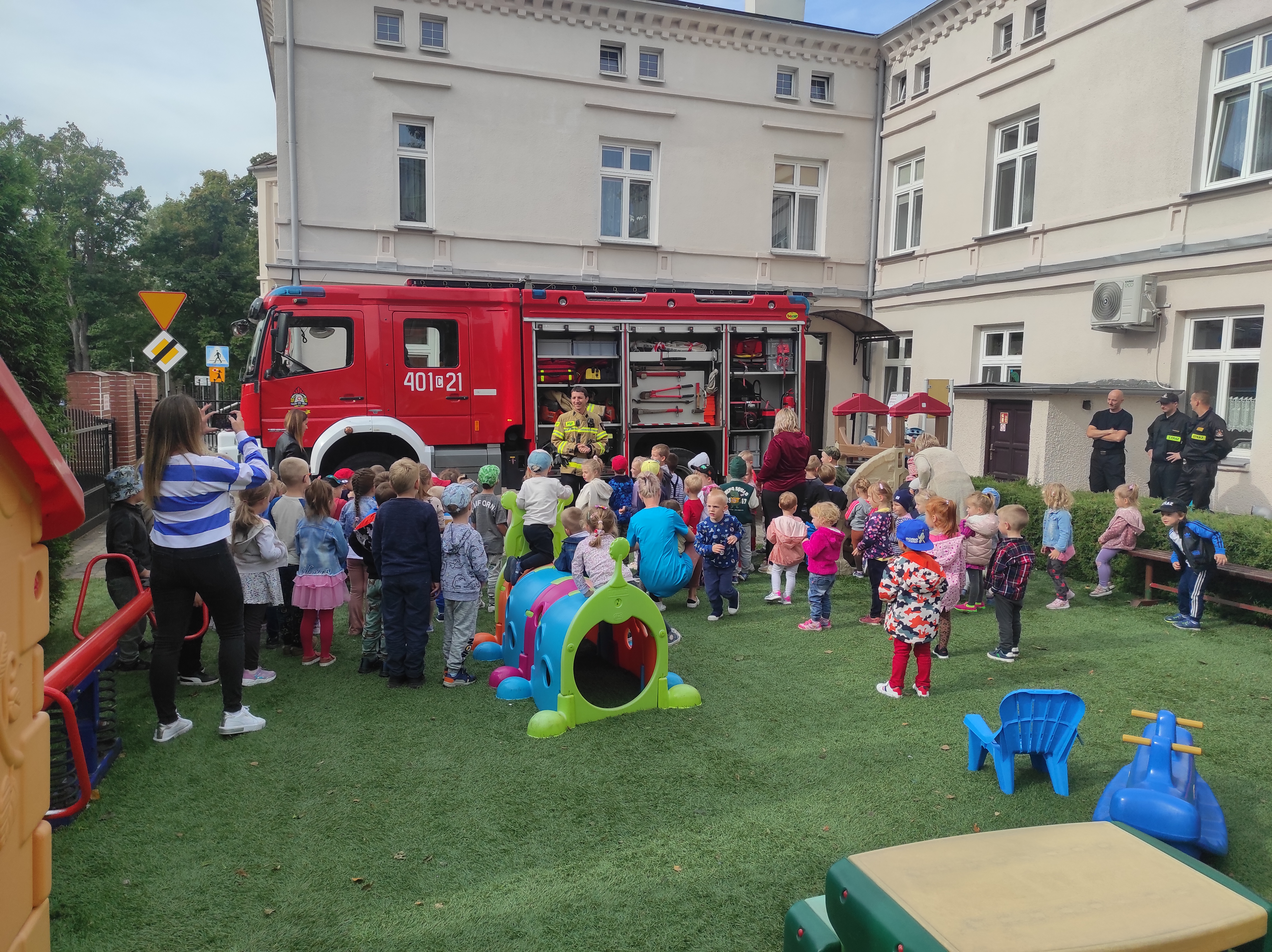W dniu 13.09.2022 roku strażacy z Jednostki Ratowniczo - Gaśniczej PSP w Aleksandrowie Kujawskim wzięli udział w ćwiczeniach obiektowych w Przedszkolu Sióstr Służebniczek NMP w Aleksandrowie Kujawskim przy ulicy Wojska Polskiego 9. Po zakończeniu ćwiczeń odbyła się pogadanka z przedszkolakami i pokaz sprzętu.