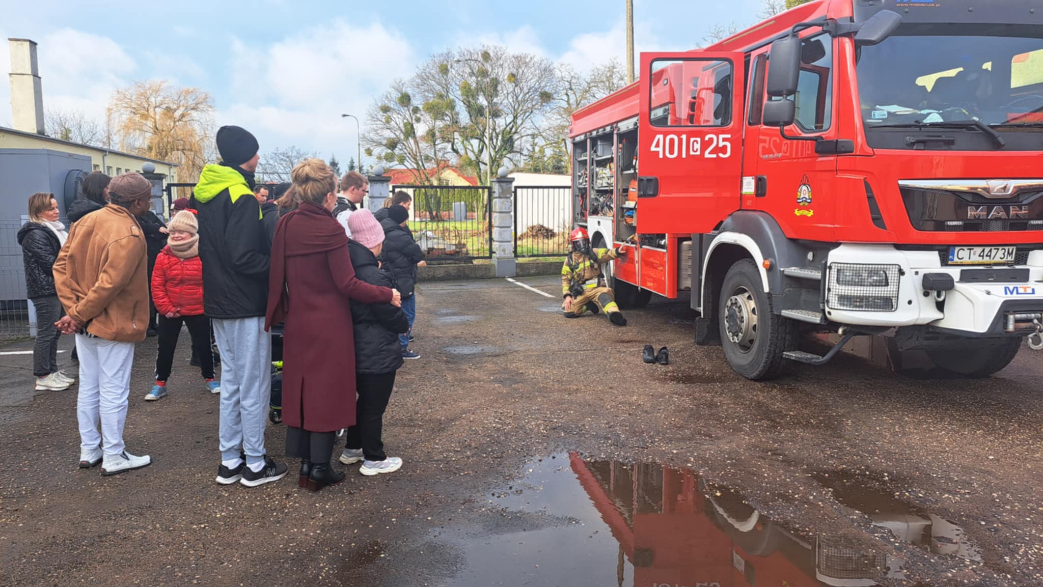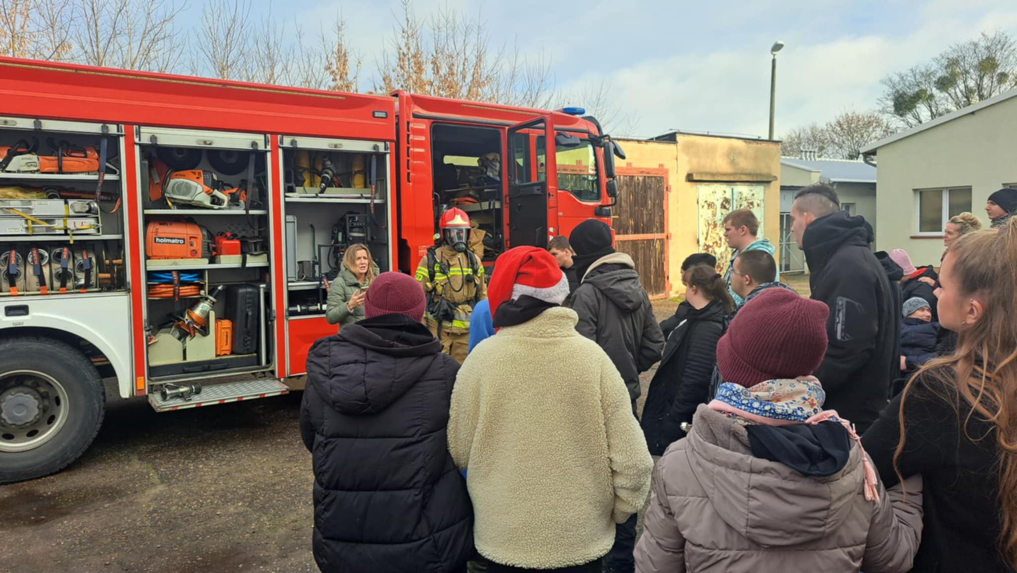 Dnia 10.12.2025 r. Strażacy z Komendy Powiatowej Państwowej Straży Pożarnej w Aleksandrowie Kujawskim zostali zaproszeni do Szkoły Specjalnej Przysposabiającej do Pracy ul. Władysława Sikorskiego 2, 87-700 Aleksandrów Kujawski, aby przybliżyć uczniom specyfikę swojej pracy i zaprezentować sprzęt ratowniczo - gaśniczy. W ramach wizyty strażacy przygotowali niezwykłą prezentację samochodu ratowniczo-gaśniczego, wraz z pełnym wyposażeniem, którego używają podczas akcji ratowniczych i pożarniczych. Spotkanie odbyło się z dziećmi niepełnosprawnymi, które z ogromnym entuzjazmem zajmowały miejsca w wozach strażackich, miały okazję obejrzeć sprzęt, jakim posługują się strażacy, a także dowiedzieć się, do czego służą poszczególne narzędzi a i urządzenia. Uczestnicy spotkania mieli również możliwość zadawania pytań, dzięki czemu poznali codzienne obowiązki strażaków oraz wyzwania z jakimi mierzą się podczas akcji ratowniczo-gaśniczych. Nie zabrakło także praktycznej lekcji bezpieczeństwa – strażacy omówili numer alarmowy 112 i wyjaśnili, w jakich sytuacjach należy z niego korzystać. Dzieci uczyły się, jak prawidłowo zgłaszać wypadki i pożary oraz jakie informacje należy podać dyżurnemu, aby pomoc mogła przybyć jak najszybciej. Wizyta ta była nie tylko edukacyjna, ale również niezwykle emocjonująca i pełna radości. Obecność prawdziwych strażaków oraz możliwość zasiadania w prawdziwych wozach strażackich sprawiły, że dla wszystkich uczestników dzień ten pozostanie niezapomnianym i wesołym wspomnieniem, które z pewnością długo będzie wywoływać uśmiech na twarzach dzieci.