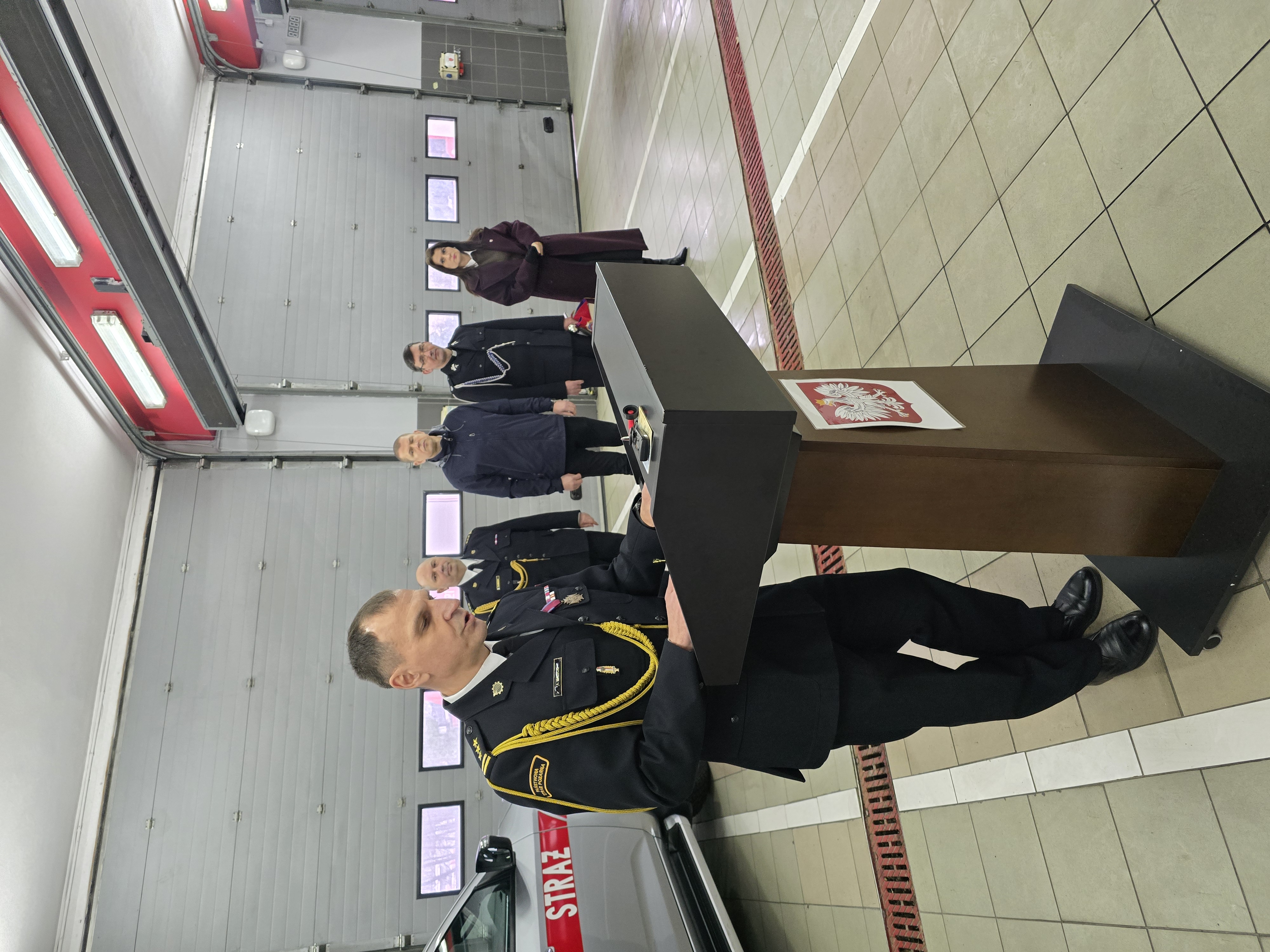 W dalszej części apelu odbyło się ślubowanie przyjętego z dniem 01.12.2025 r. strażaka Jakuba Kierzkowskiego.