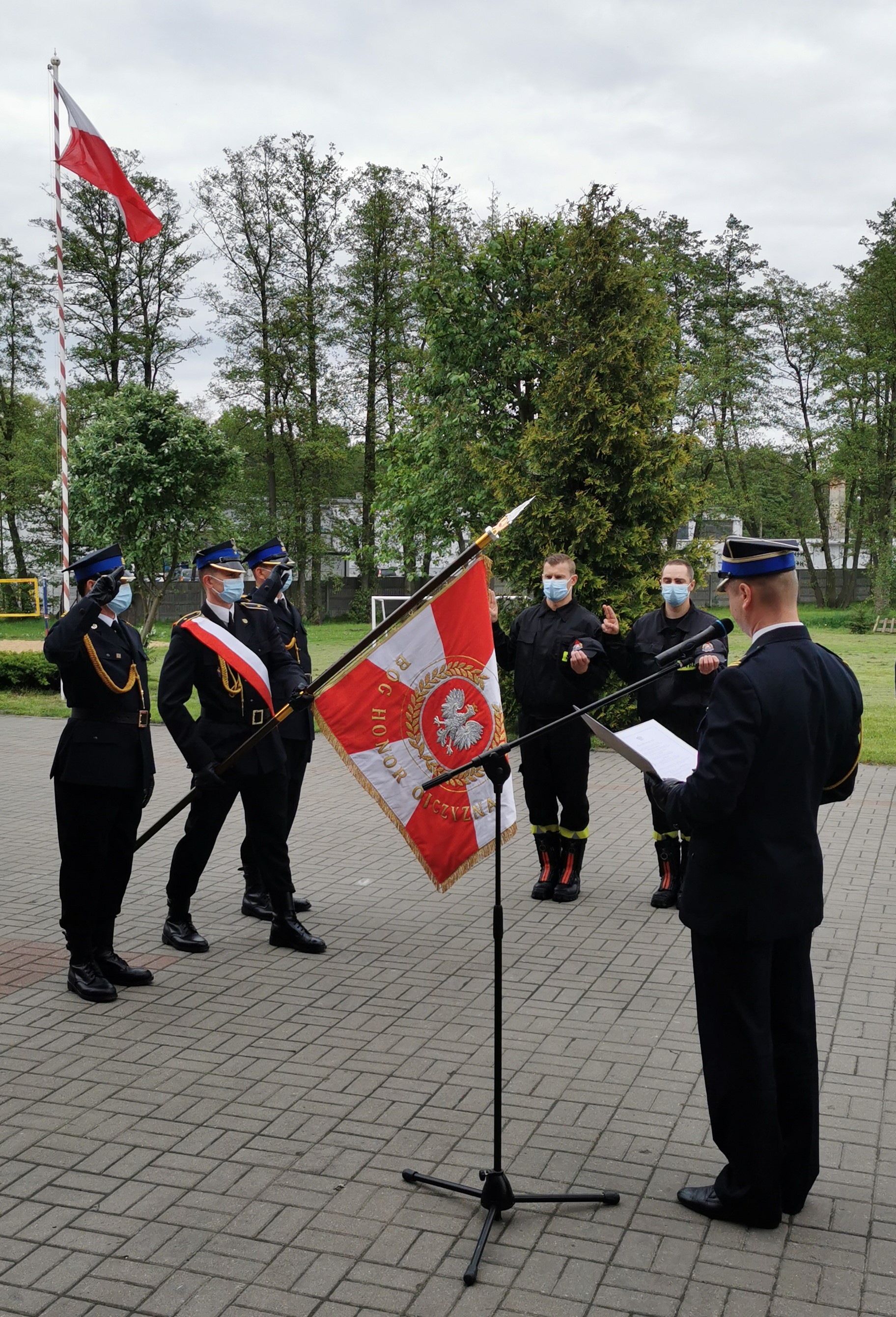 W trakcie uroczystości minutą ciszy uczczono zmarłych strażaków oraz członków ich rodzin, szczególnie ofiar koronawirusa. Po powitaniu zaproszonych gości i przemówieniu Komendanta Powiatowego odbyło się ślubowanie nowoprzyjętych do tutejszej komendy funkcjonariuszy.