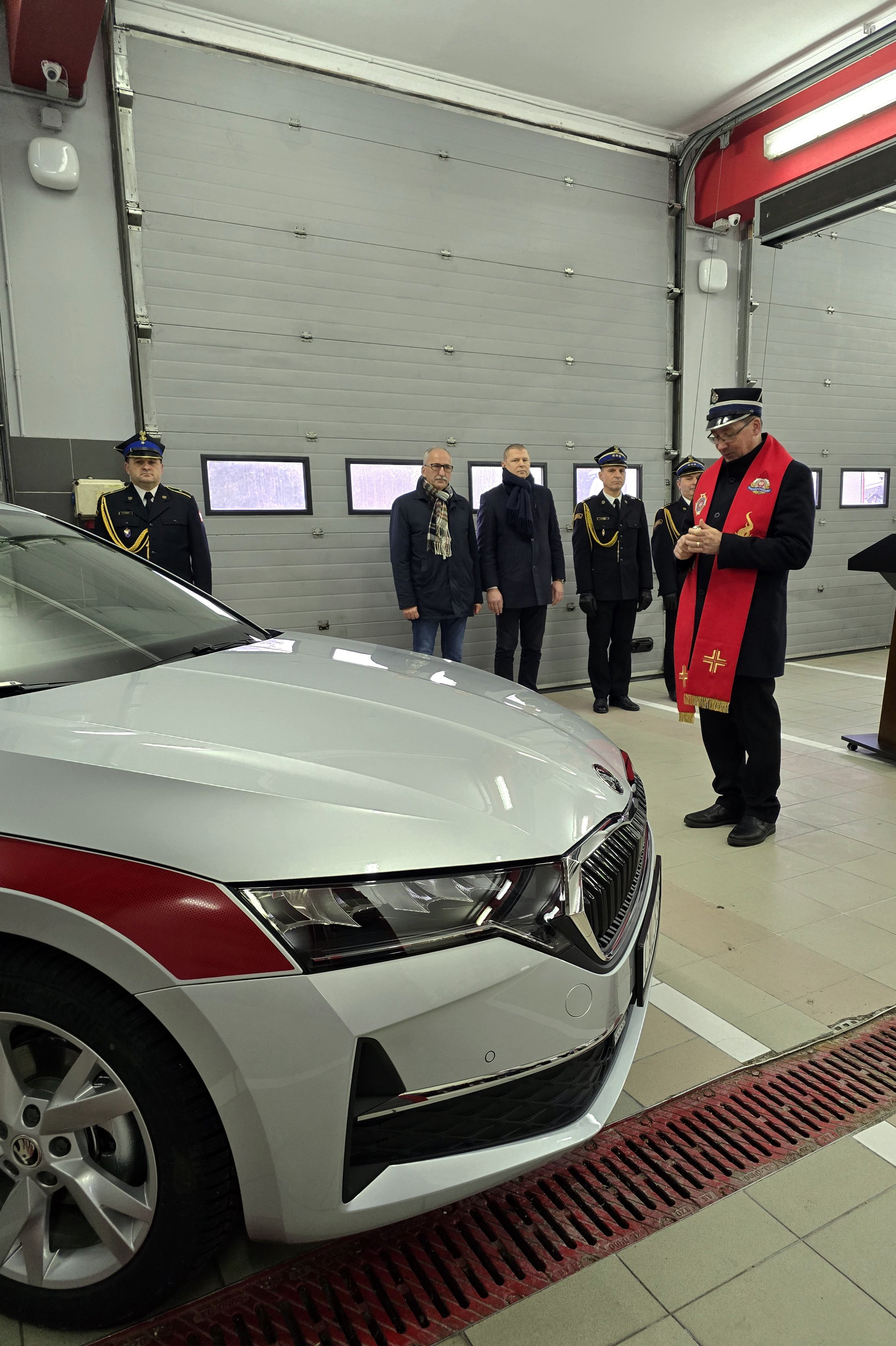 Dzisiejszy apel był również okazją do poświęcenia nowego samochodu operacyjnego, który Komenda Powiatowa PSP w Aleksandrowie Kujawskim pozyskała dzięki dofinansowaniu ze Starostwa Powiatowego w Aleksandrowie Kujawskim oraz z Wojewódzkiego Funduszu Ochrony Środowiska. ks. Andrzej Zdzienicki – kapelan strażaków powiatu aleksandrowskiego dokonał aktu poświęcenia samochodu a Pan Arkadiusz Świątkowski- Przewodniczący Rady Powiatu oraz Pan Ryszard Stępkowski – wicestarosta przekazali kluczyki i dokumenty od samochodu na ręce funkcjonariusza PSP.