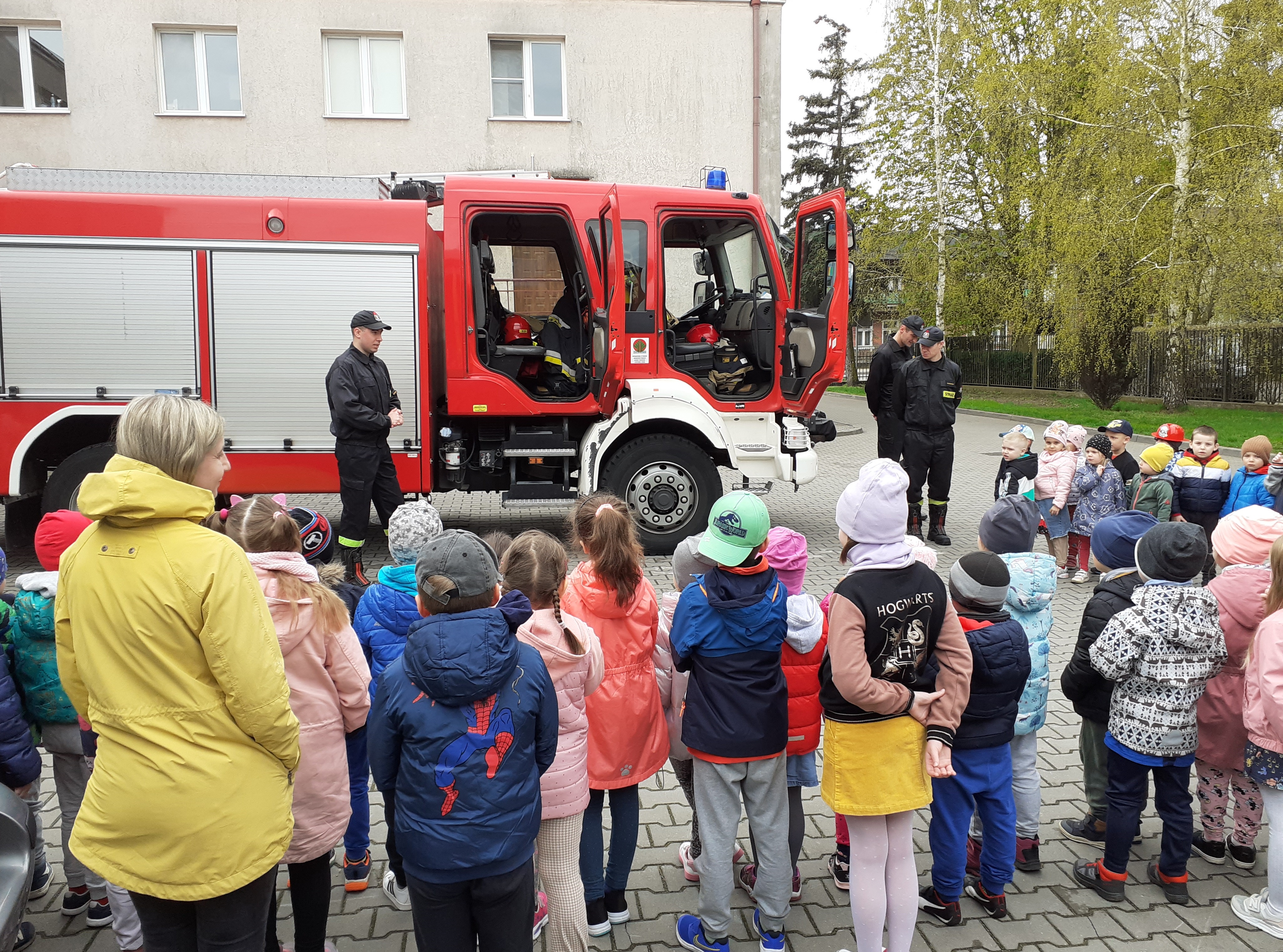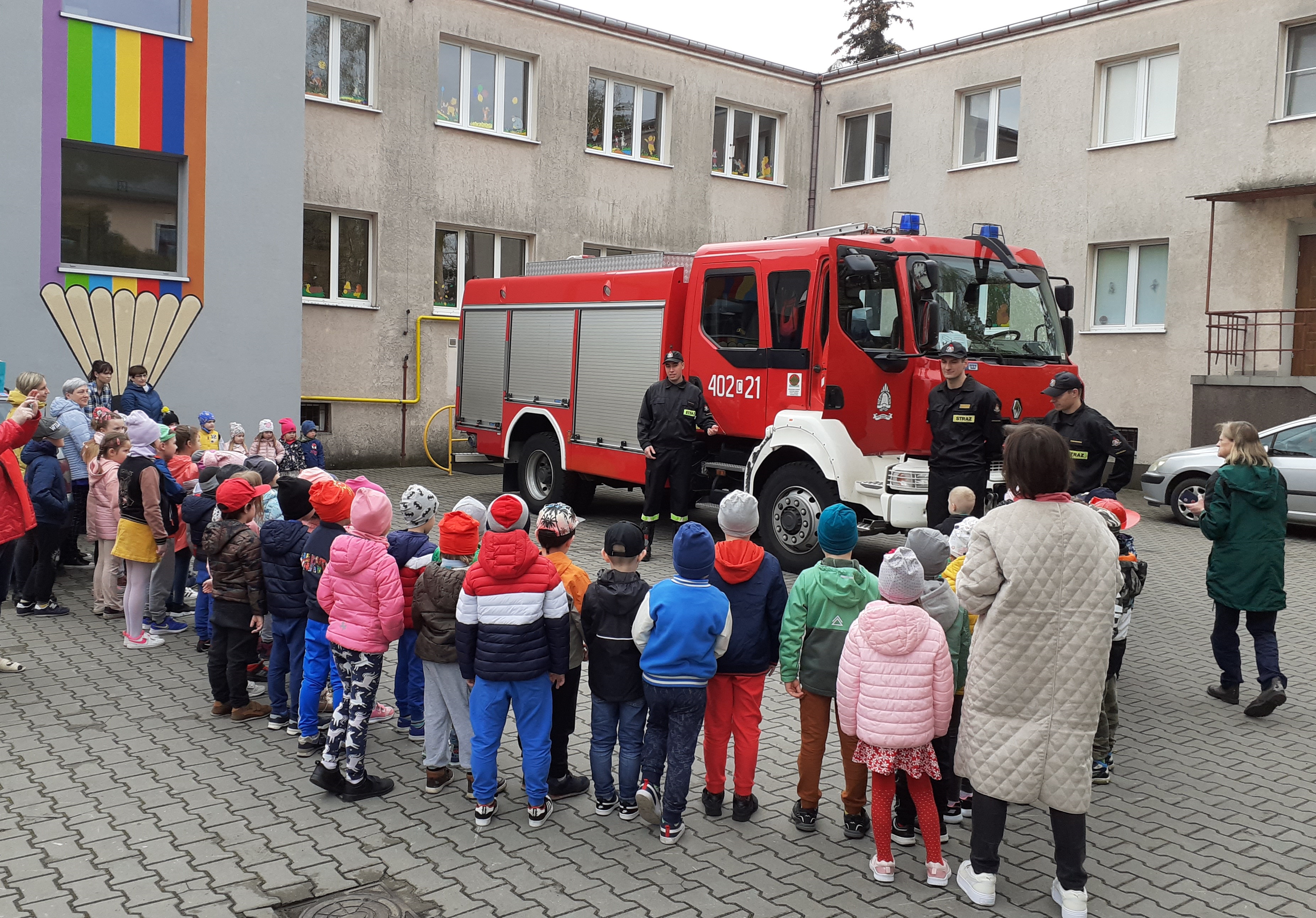 20 kwietnia 2023 roku strażacy z Jednostki Ratowniczo-Gaśniczej w Ciechocinku odwiedzili przedszkolaków w Przedszkolu Samorządowym nr 1 ,,BAJKA" w Ciechocinku. Celem spotkania był pokaz instruktażowy z użyciem wozu strażackiego oraz omówienie zasad bezpieczeństwa. Korzystając z ładnej pogody, całe spotkanie przeprowadzono na placu przy budynku przedszkola. Podczas pogadanki dzieci wykazały się znajomością numeru alarmowego oraz szeroką wiedzą na temat rozpoznawania zagrożenia i działań straży pożarnej.