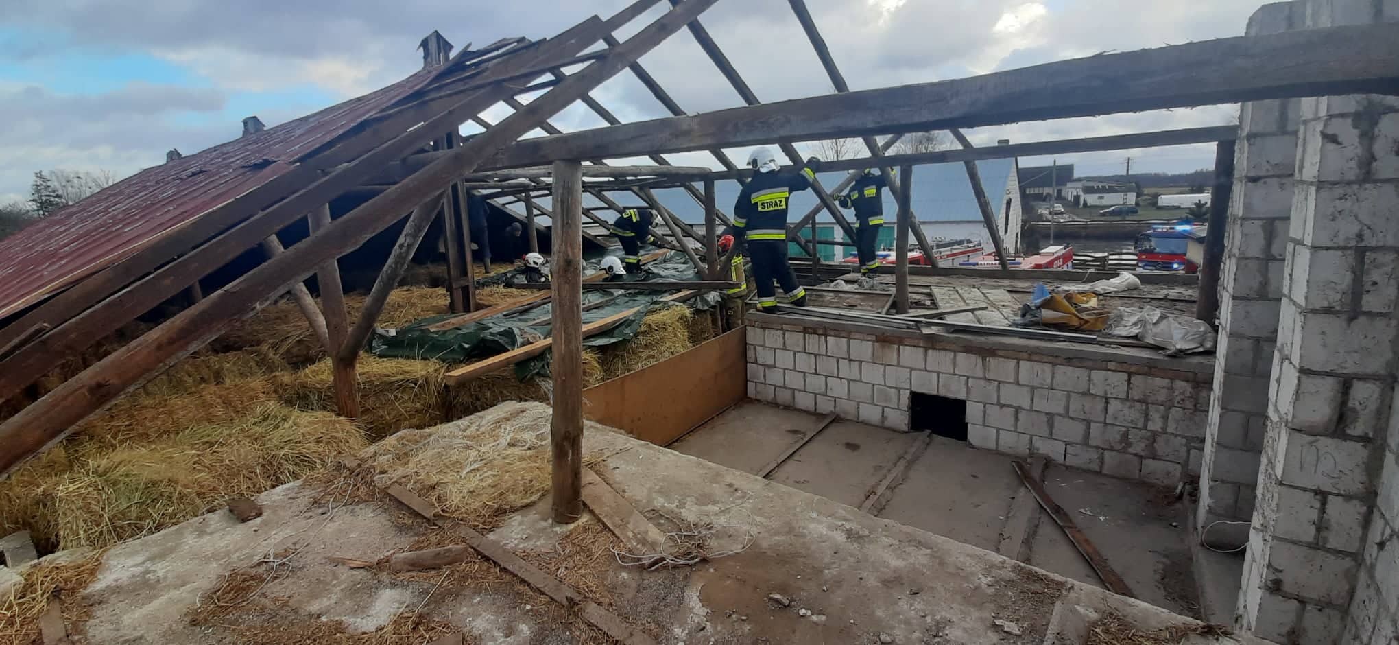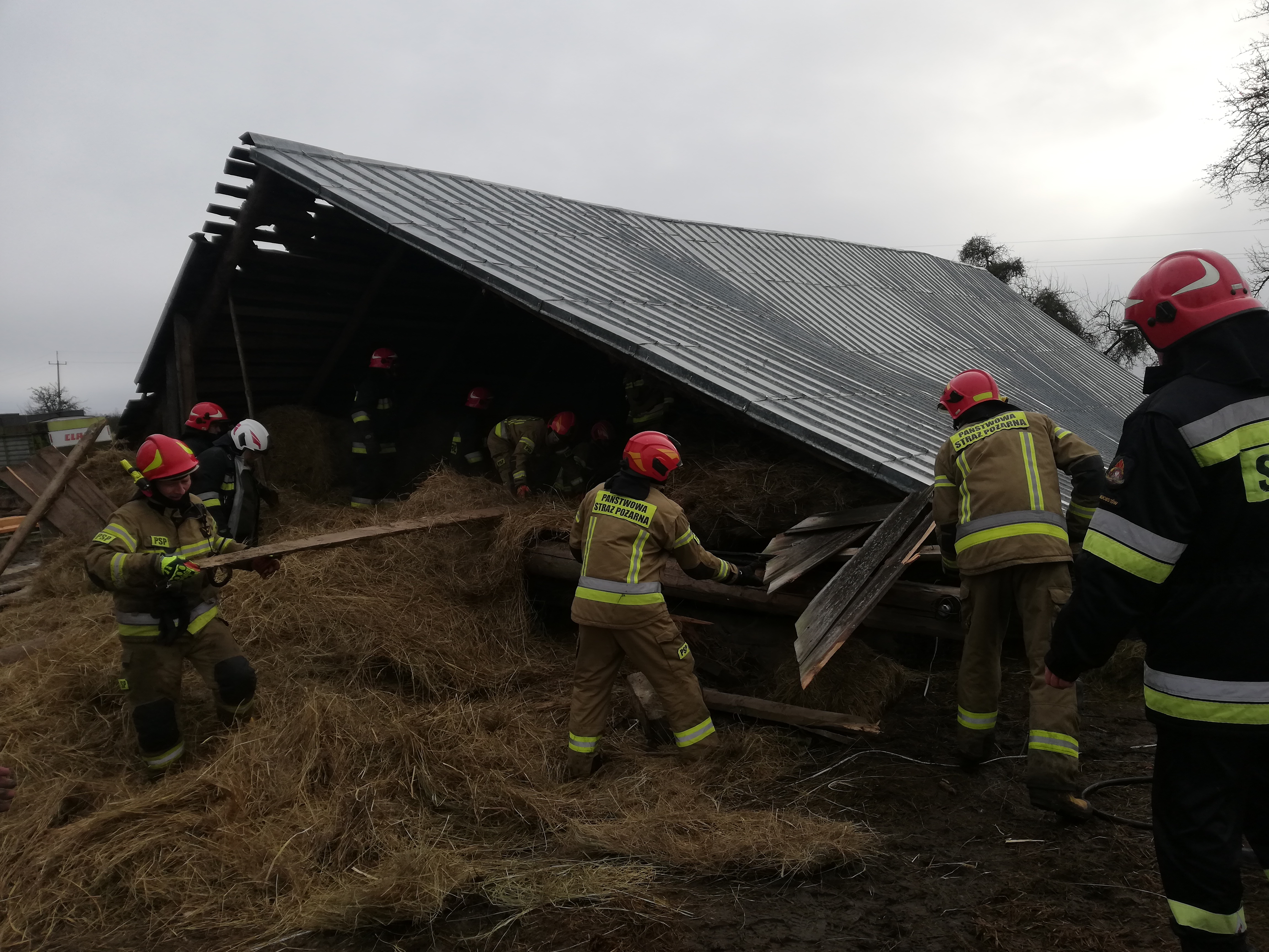 Minionej doby 14 stycznia Stanowisko Kierowania Komendanta Powiatowego Państwowej Straży Pożarnej w Augustowie odnotowało 38 interwencji związanych w większości z podmuchami silnego wiatru. Do niebezpiecznej sytuacji doszło we wsi Gliniski, gm. Augustów, gdzie silnie wiejący wiatr doprowadził do zawalenia się drewnianej obory w której przebywało około 40 sztuk bydła z czego 30 było uwięzionych pod zawaloną konstrukcją. Strażakom udało się uwolnić i ewakuować wszystkie zwierzęta, którymi zaopiekował się właściciel. Z kolei w miejscowości Piekutowo, gm. Bargłów Kościelny silny wiatr zerwał część dachu z budynku chlewni. Część konstrukcji spadła na stojący na podwórku ciągnik rolniczy. Natomiast w miejscowości Nowinka doszło do zerwania kilku arkuszy blachy z budynku szkoły. Pozostałe interwencje związane były głównie z usuwaniem powalonych drzew z dróg i ciągów komunikacyjnych. Szczęśliwie we wszystkich zdarzeniach nikt nie odniósł obrażeń.